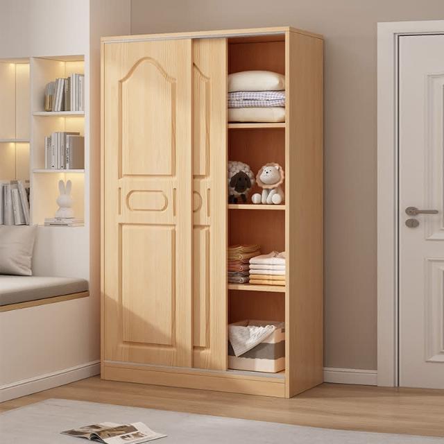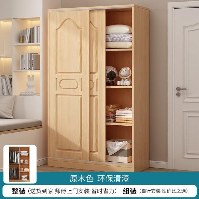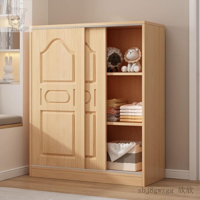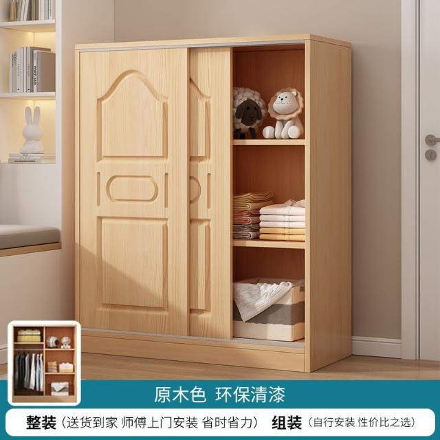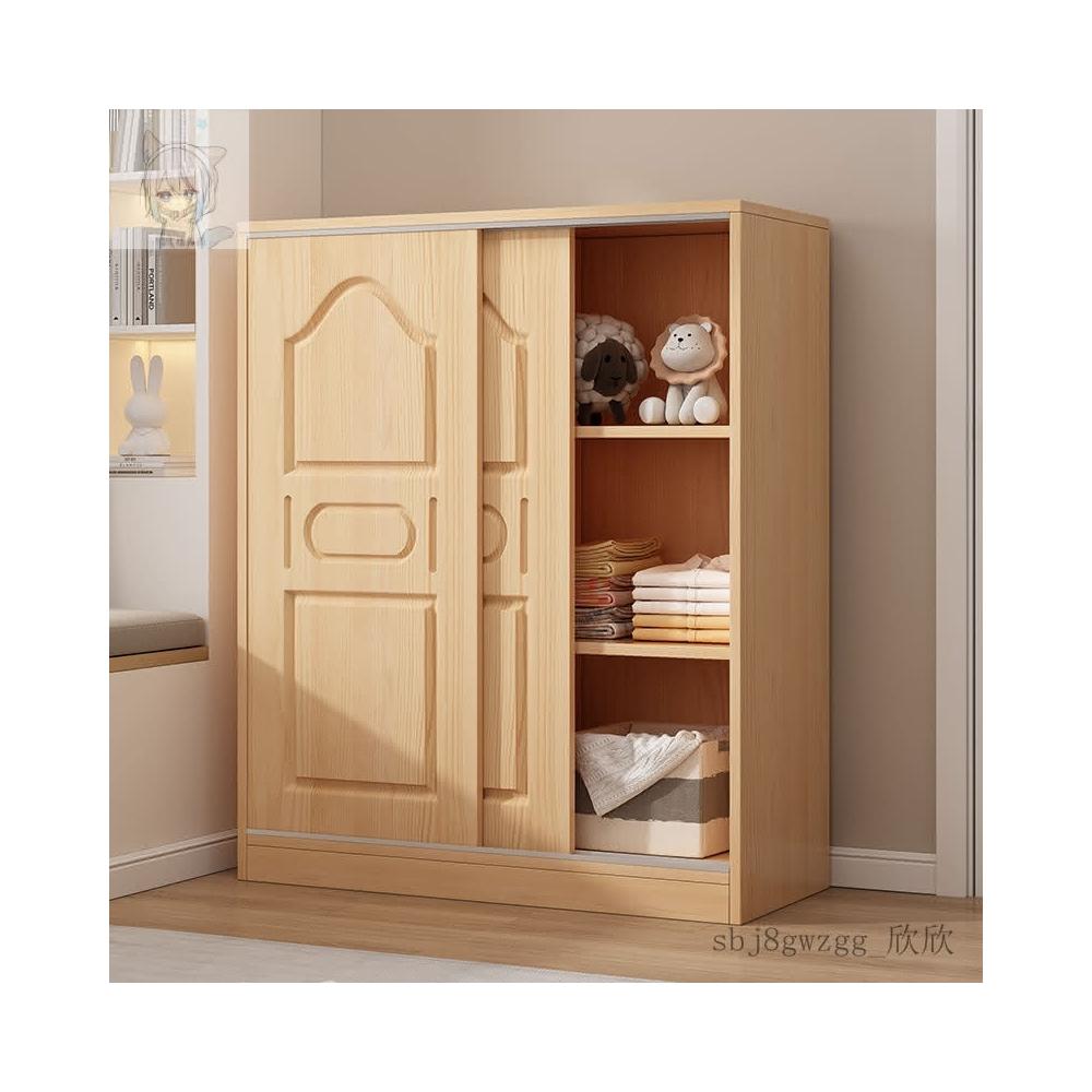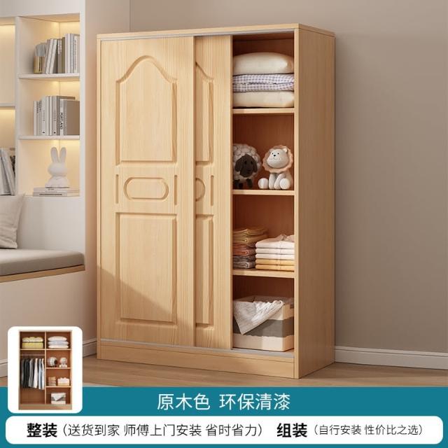 可上門安裝 全實木衣櫃家用臥室小戶型推拉門衣櫥現代簡約收納櫃鬆木儲物櫃子