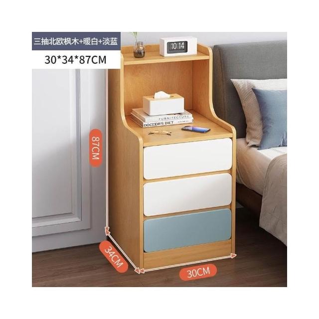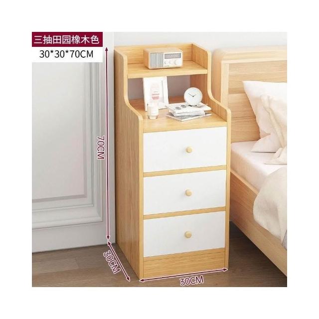 床頭櫃超窄小型臥室現代簡約床邊櫃實木色簡易迷你儲物收納小櫃子窄版三抽床頭櫃 隙縫櫃 邊櫃 抽屜櫃 床頭收納櫃