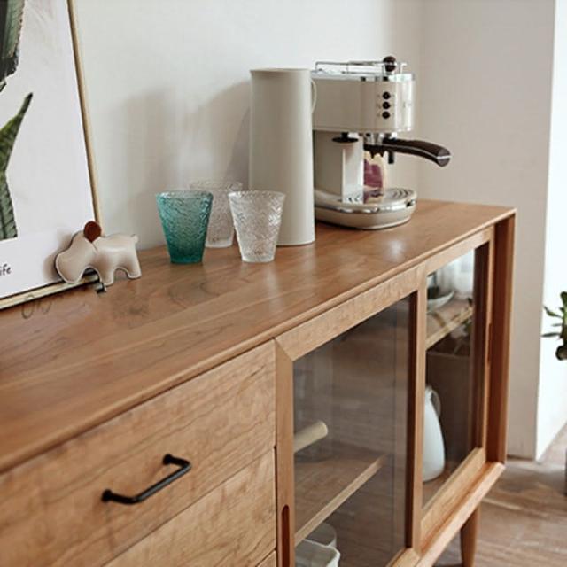 工廠直髮 北歐實木餐邊櫃簡約客廳原木收納櫃廚房落地立式儲物櫃餐廳餐邊櫃