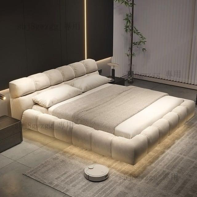 可開發票 奶油風懸浮床現代簡約雲朵泡芙床新款主臥科技佈大床北歐雙人佈床