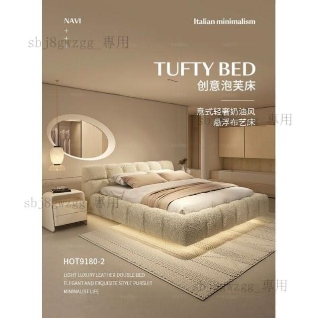 可開發票 奶油風懸浮床現代簡約雲朵泡芙床新款主臥科技佈大床北歐雙人佈床