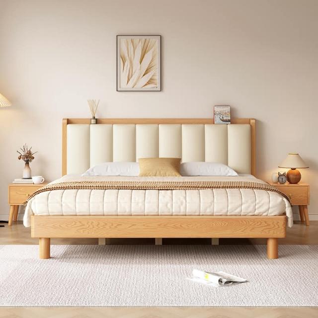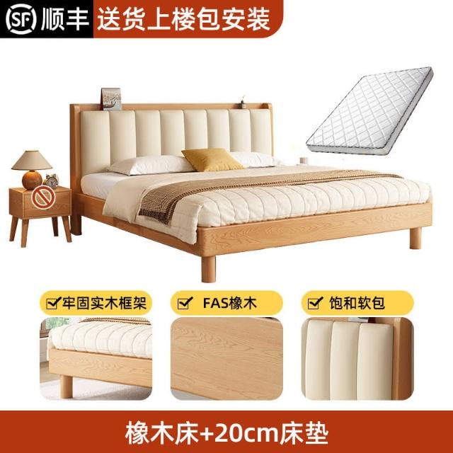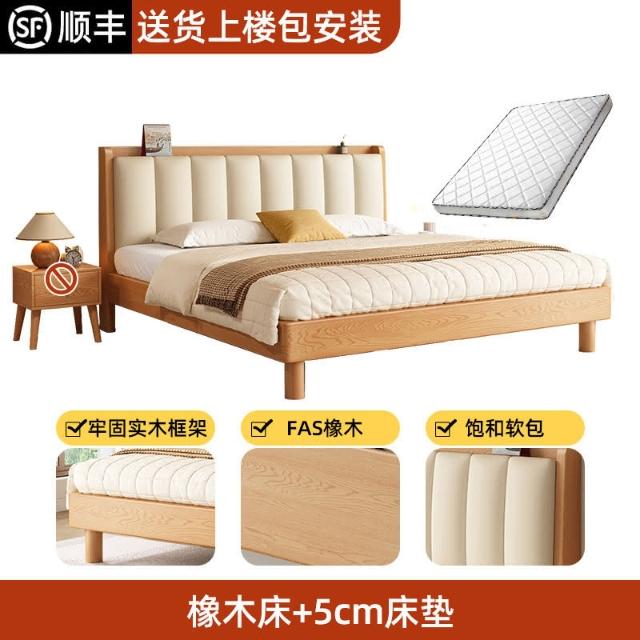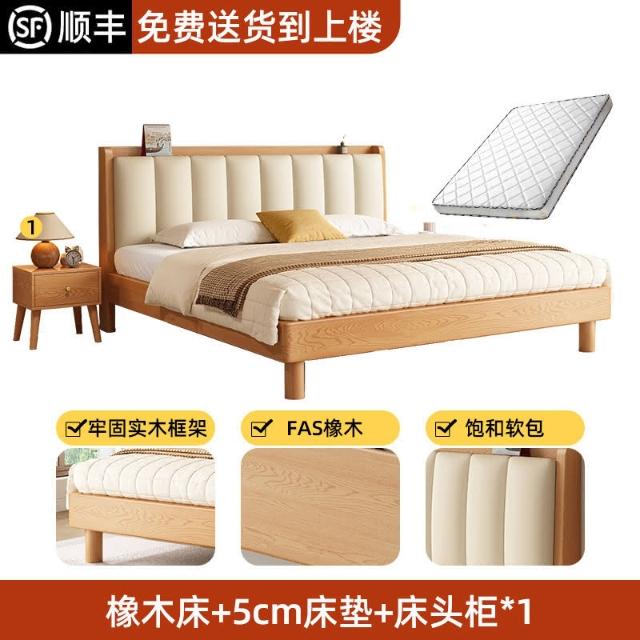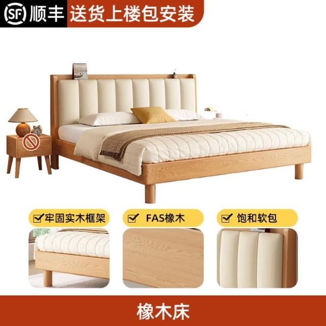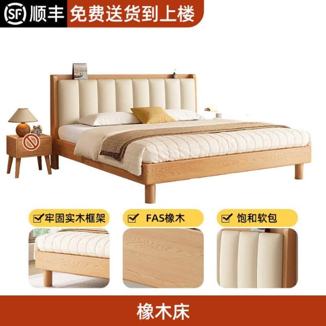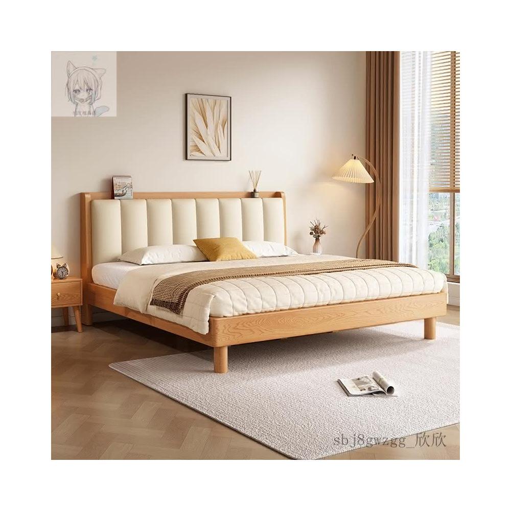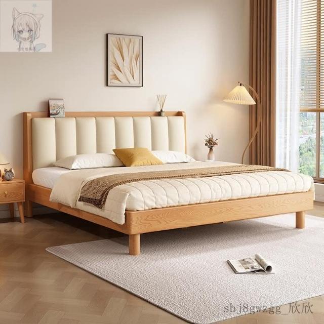 工廠直髮 實木床現代簡約橡木床1.8米雙人床臥室用床架1.5米原木風單人床