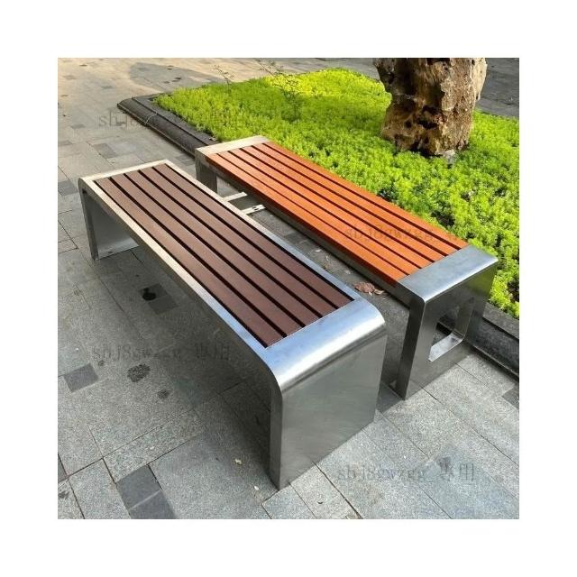 公園椅戶外長椅防腐塑木凳子公共座椅室外休息條凳不銹鋼戶外椅子