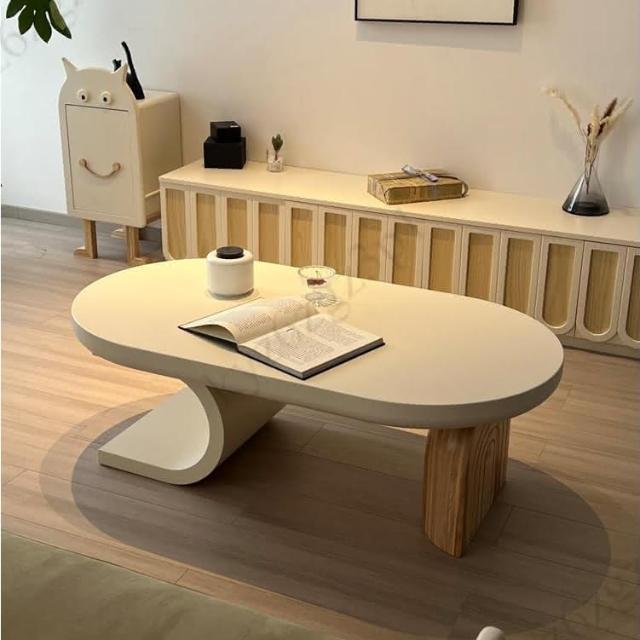法式雲朵奶油風茶几客廳家用小戶型創意侘寂實木原木茶桌几極簡風