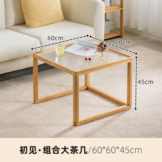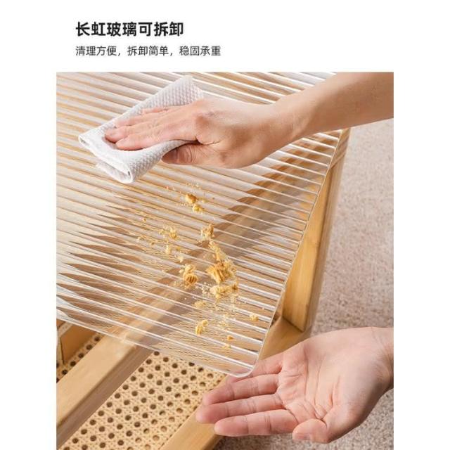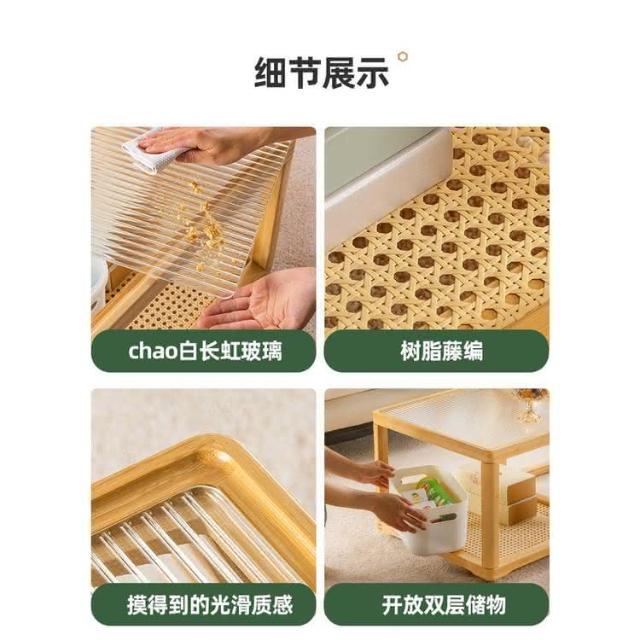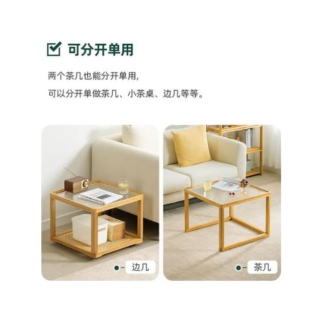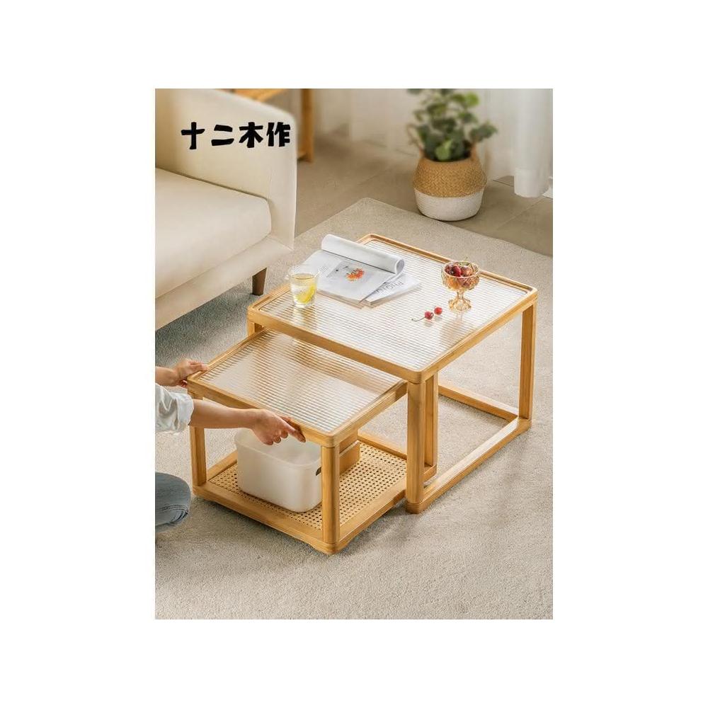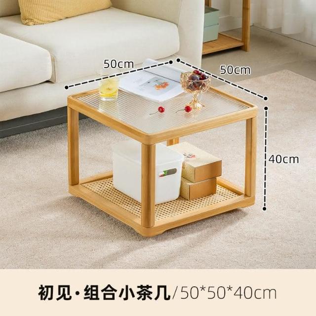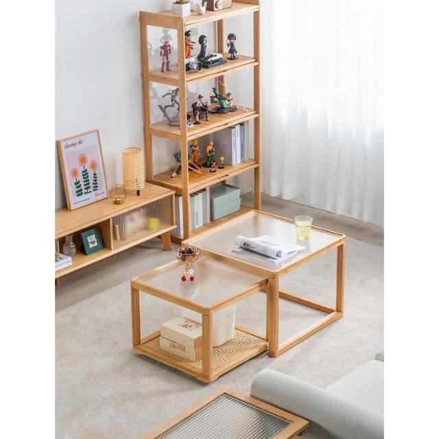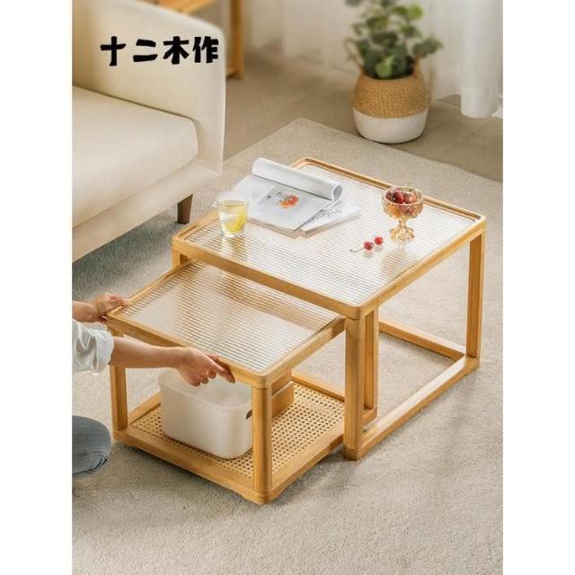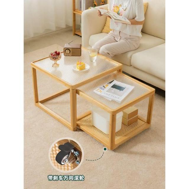 日式長虹玻璃茶幾客廳傢用小戶型實木移動邊幾大小組閤藤編小茶臺