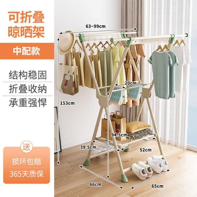偉經X型落地晾衣架折疊多功能曬衣架陽臺臥室掛衣架曬衣被專用