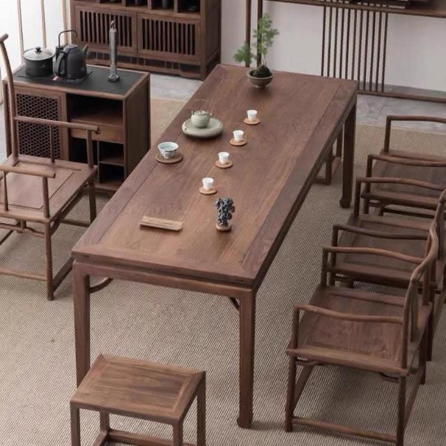 免運新中式茶桌椅組閤老榆木實木茶臺禪意功夫茶幾家用茶室家具泡茶桌