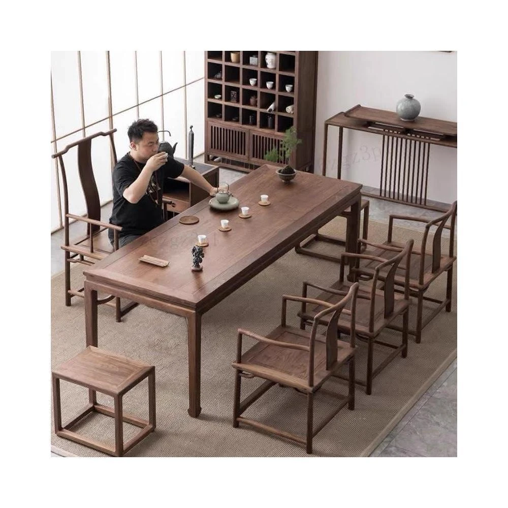 中式茶桌椅組閤老榆木實木茶臺禪意功夫茶幾家用茶室家具泡茶桌