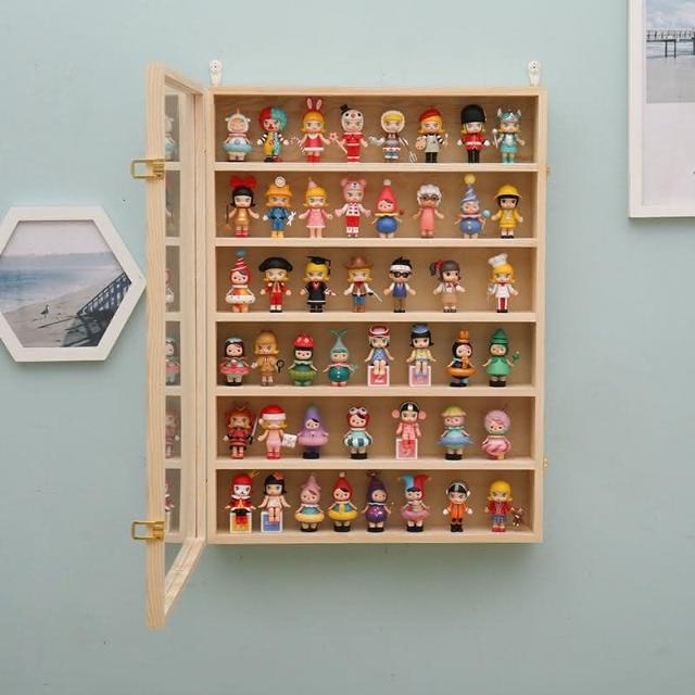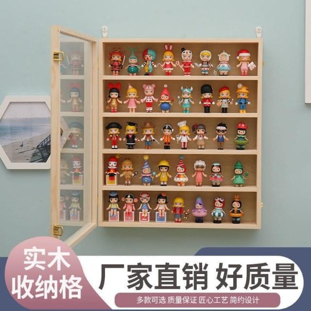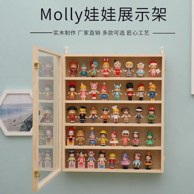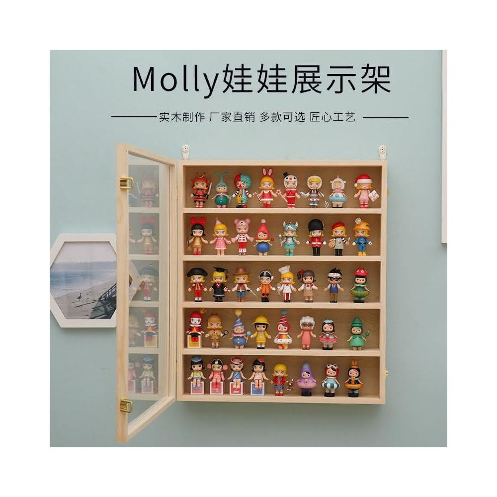 泡泡瑪特展示盒Molly畢奇手辦盲盒娃娃防塵展示架茉莉實木收納櫃