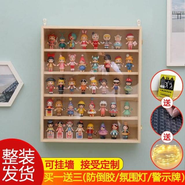 泡泡瑪特展示盒Molly畢奇手辦盲盒娃娃防塵展示架茉莉實木收納櫃