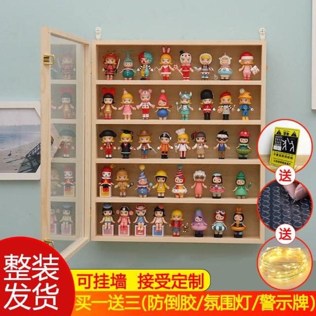 泡泡瑪特展示盒Molly畢奇手辦盲盒娃娃防塵展示架茉莉實木收納櫃