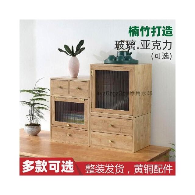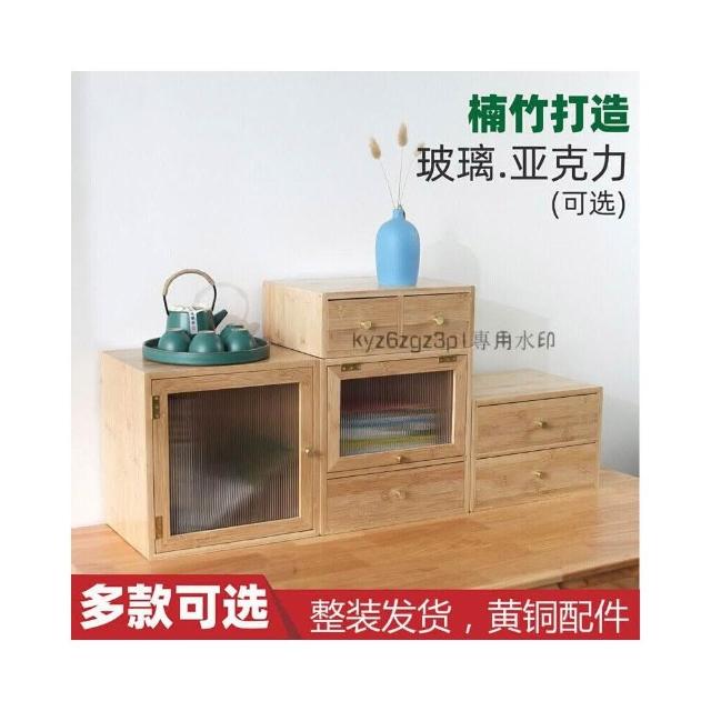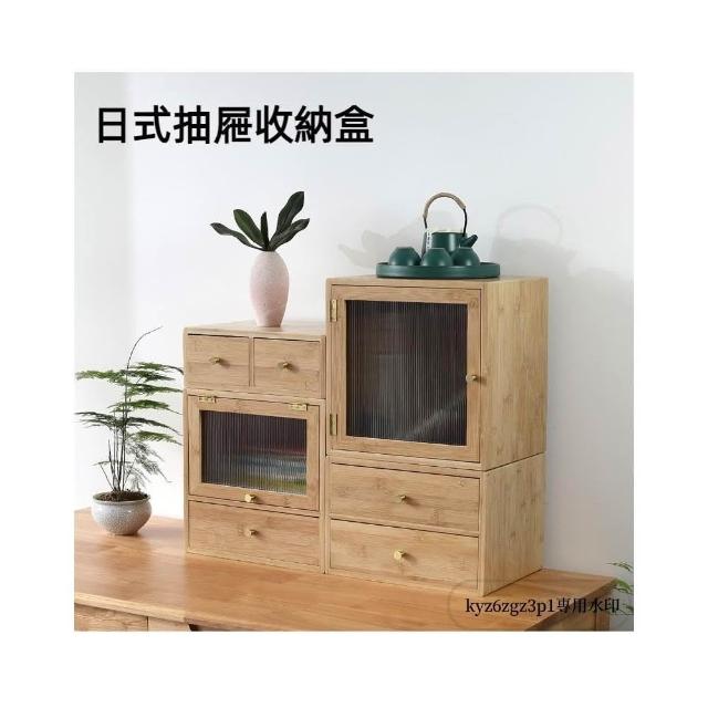 置物架 日式抽屜桌面收納櫃 實木桌上收納盒