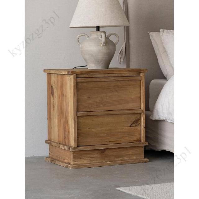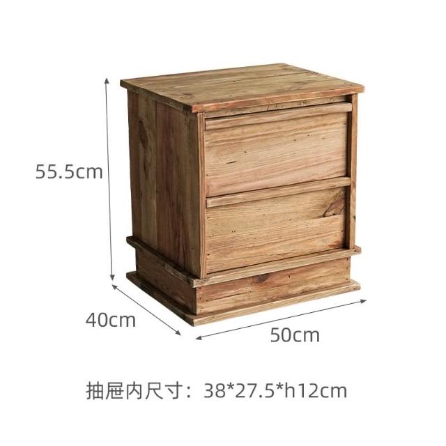 家居復古實木床頭櫃侘寂風簡約現代收納櫃抽屜櫃老松木小邊櫃