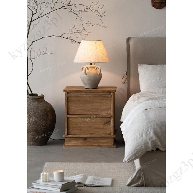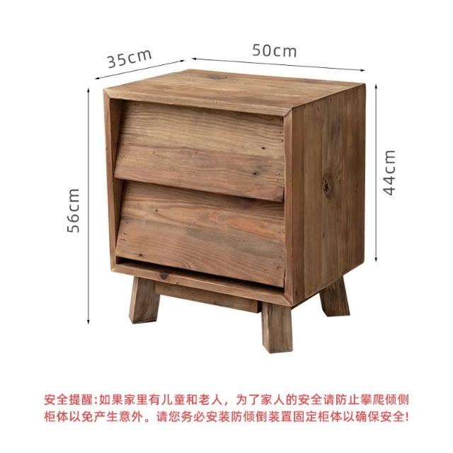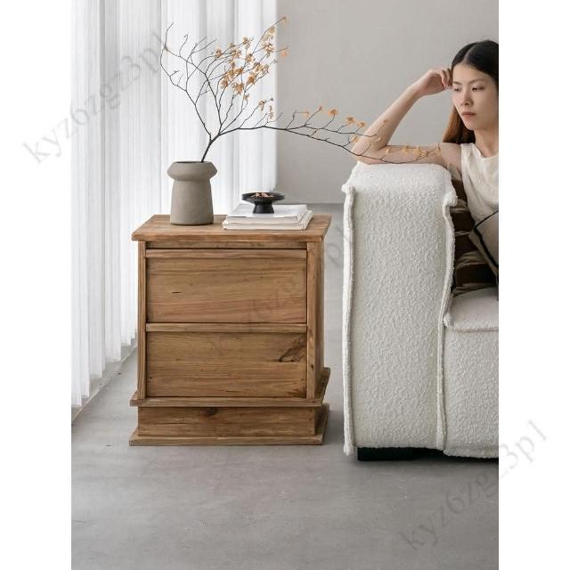 家居復古實木床頭櫃侘寂風簡約現代收納櫃抽屜櫃老松木小邊櫃