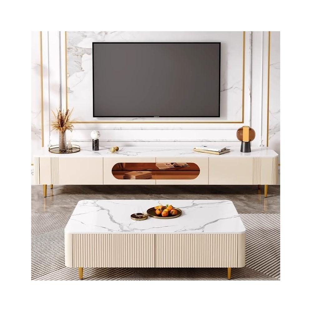 輕奢奶油風茶幾電視櫃小戶型組閤實木白色客廳傢具高級感巖闆茶幾