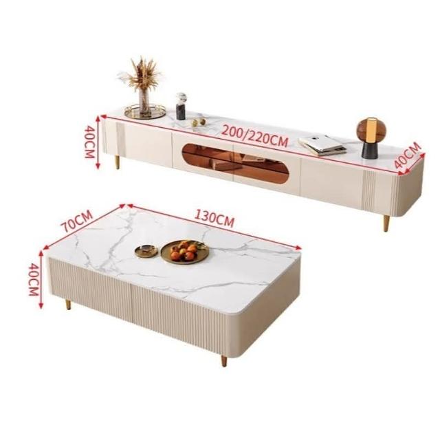 輕奢奶油風茶幾電視櫃小戶型組閤實木白色客廳傢具高級感巖闆茶幾