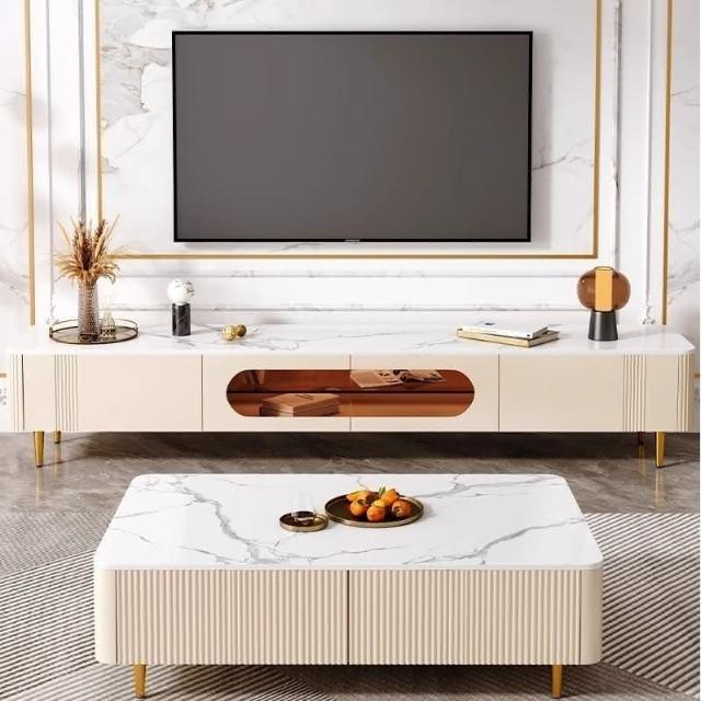 輕奢奶油風茶幾電視櫃小戶型組閤實木白色客廳傢具高級感巖闆茶幾