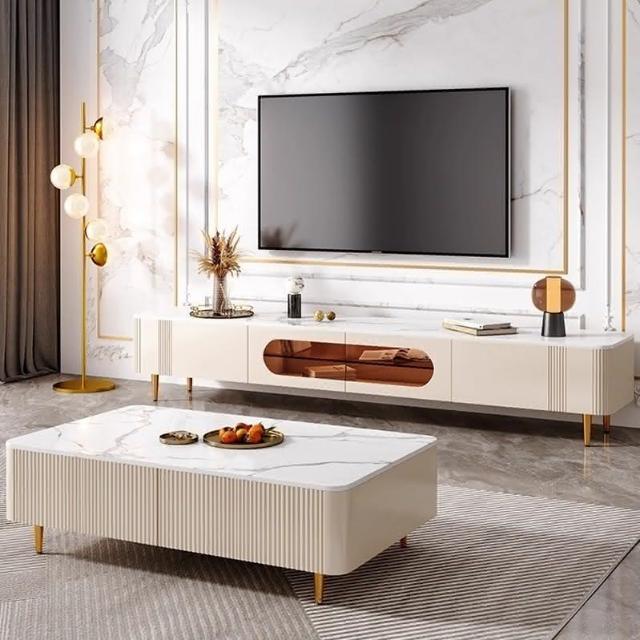 輕奢奶油風茶幾電視櫃小戶型組閤實木白色客廳傢具高級感巖闆茶幾