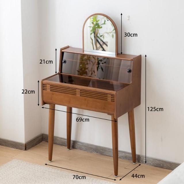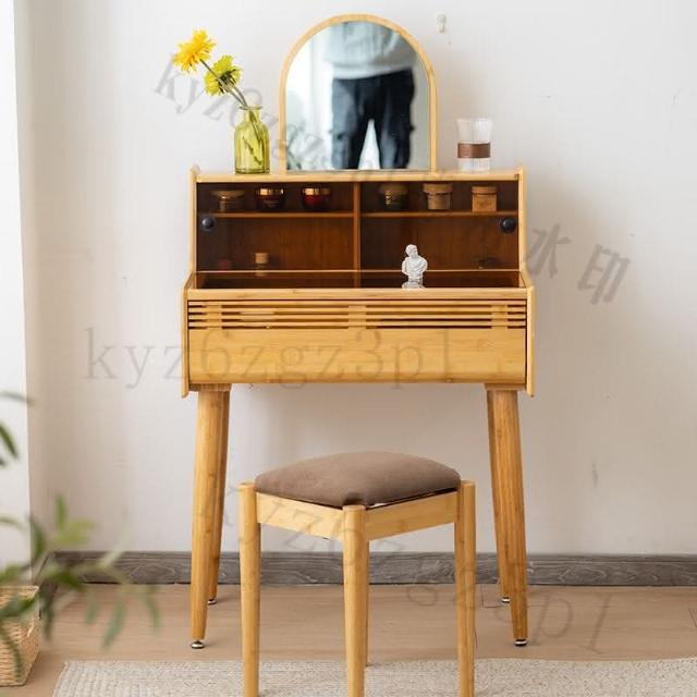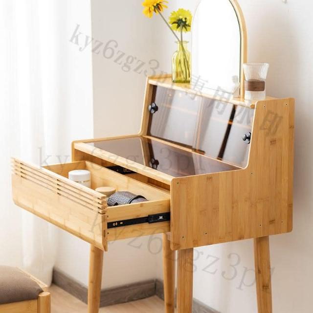 日式梳妝臺臥室小戶型現代簡70cm實木書桌化妝桌一體玻璃化妝臺