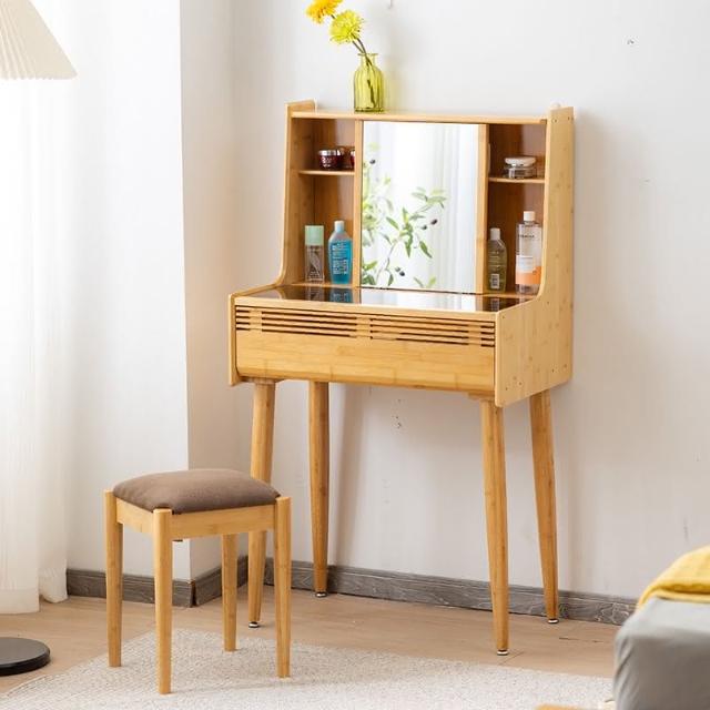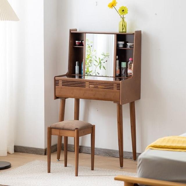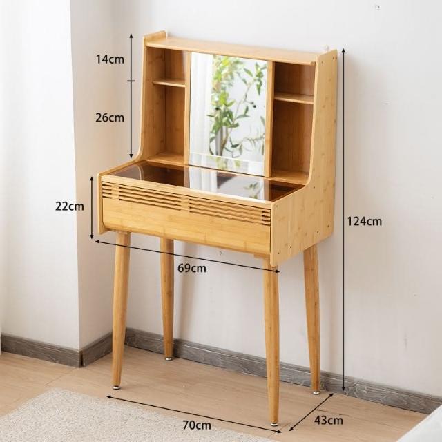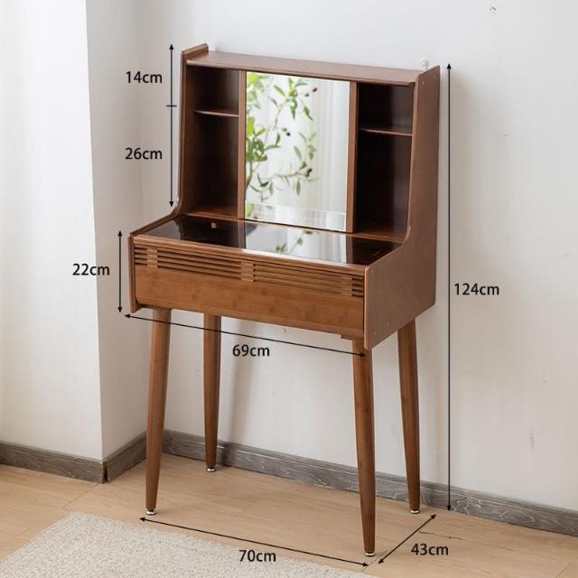 日式梳妝臺臥室小戶型現代簡70cm實木書桌化妝桌一體玻璃化妝臺