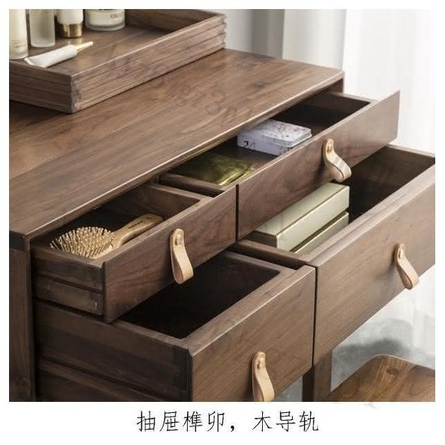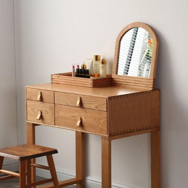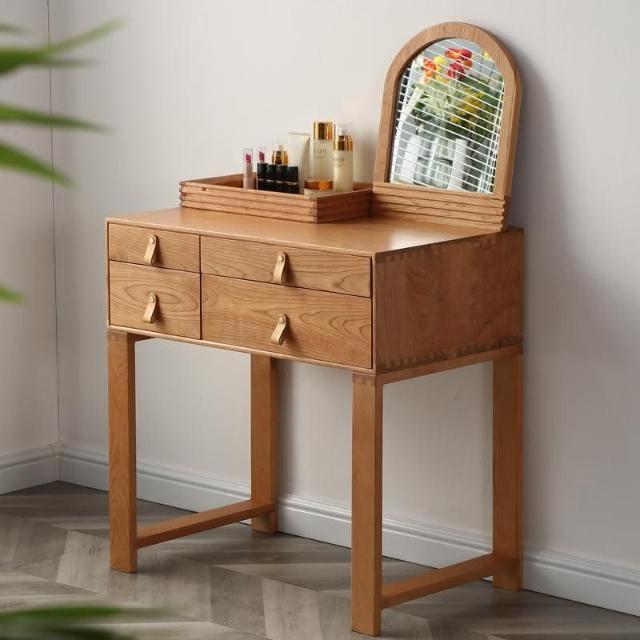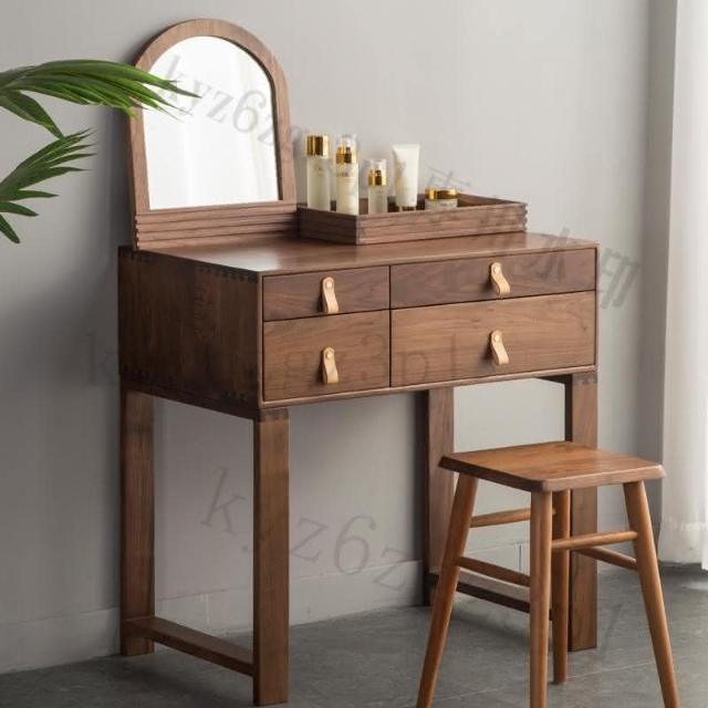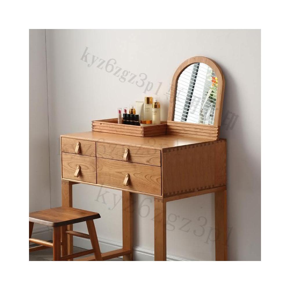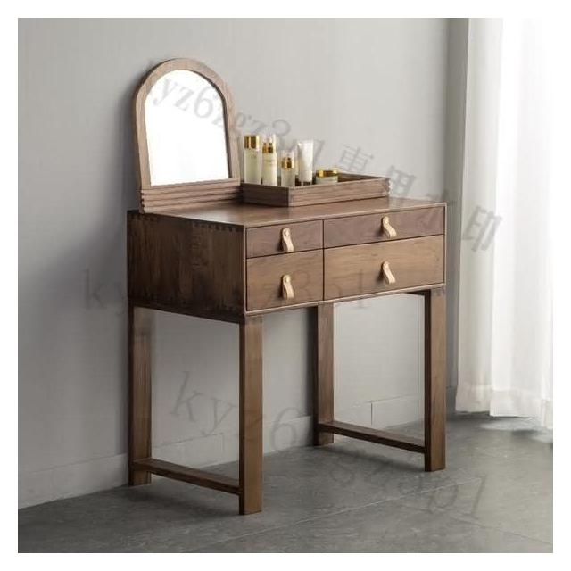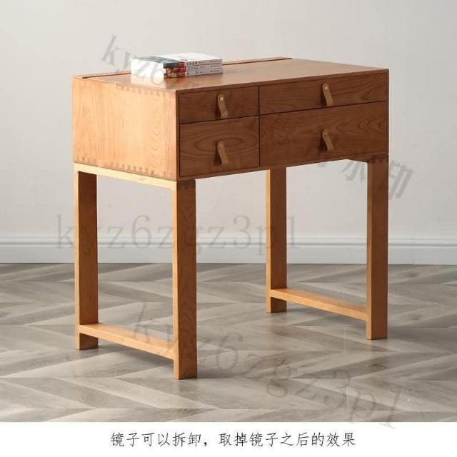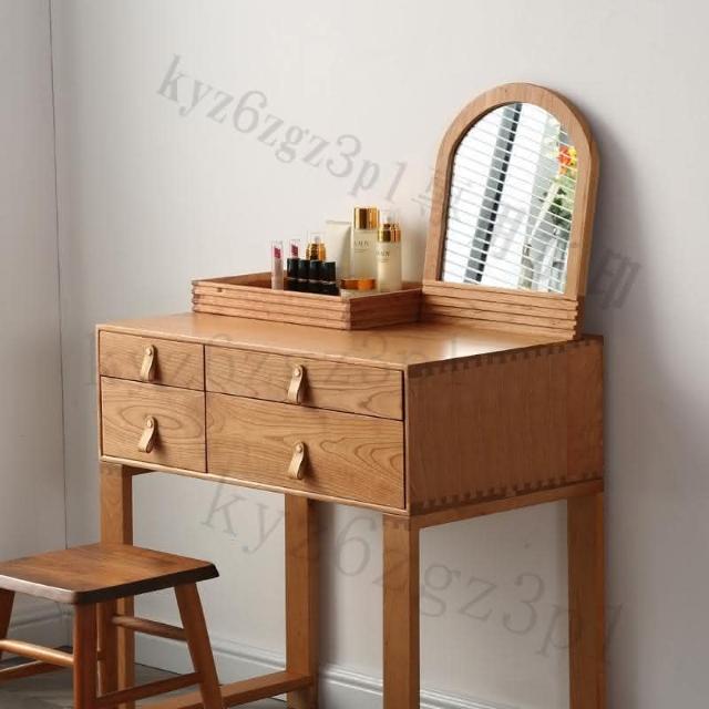 北歐簡約實木櫻桃木梳妝臺臥室小戶型日式白橡木衚桃木化妝桌收納