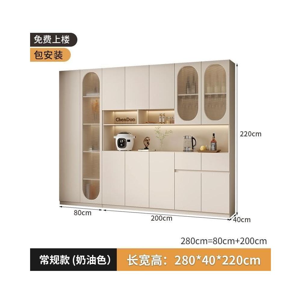 奶油風餐邊櫃靠墻高櫃一體置物架家用客廳收納展示櫃簡約酒櫃