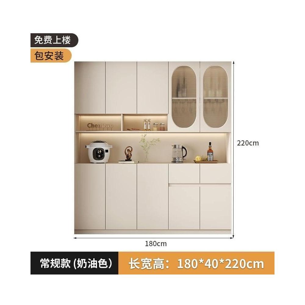 奶油風餐邊櫃靠墻高櫃一體置物架家用客廳收納展示櫃簡約酒櫃