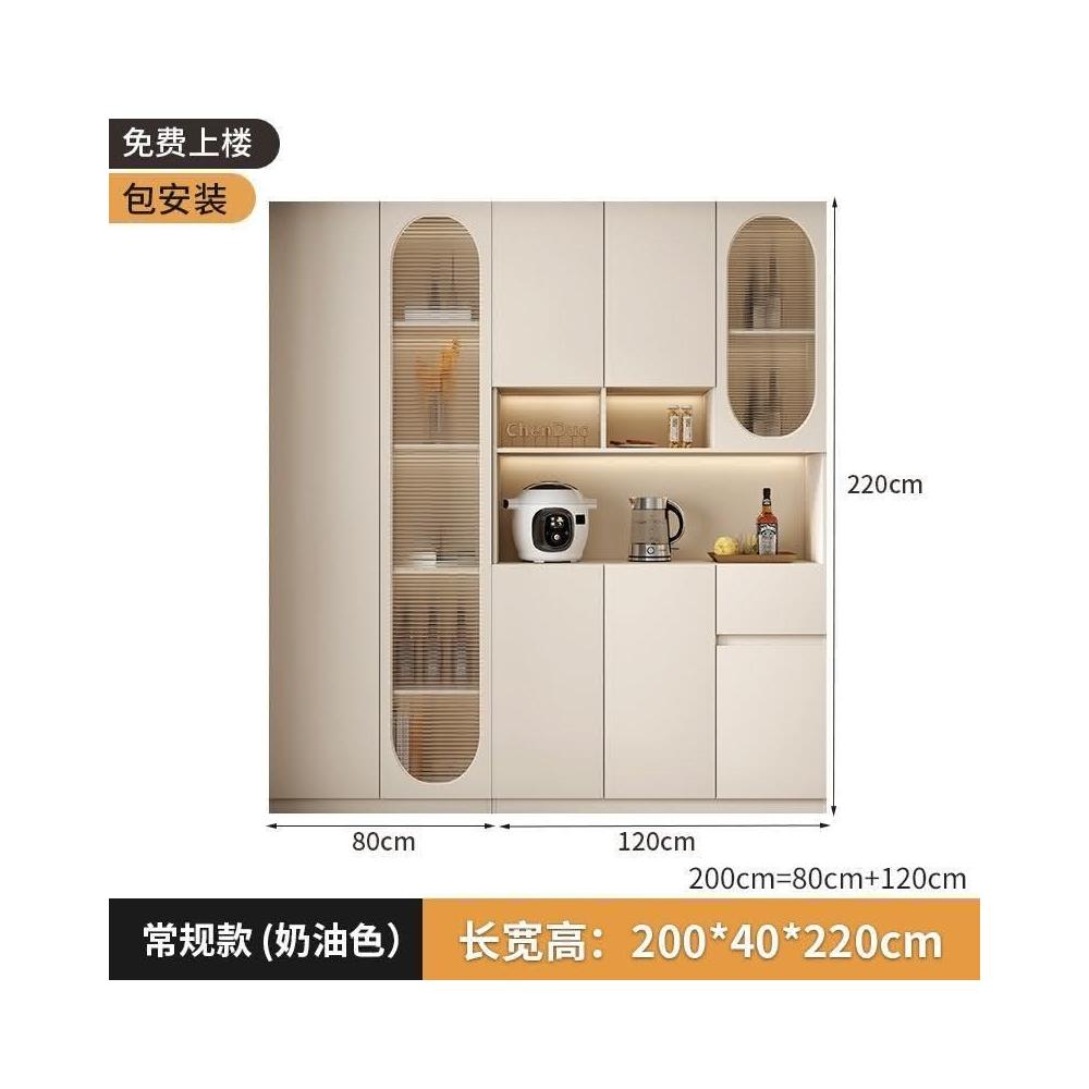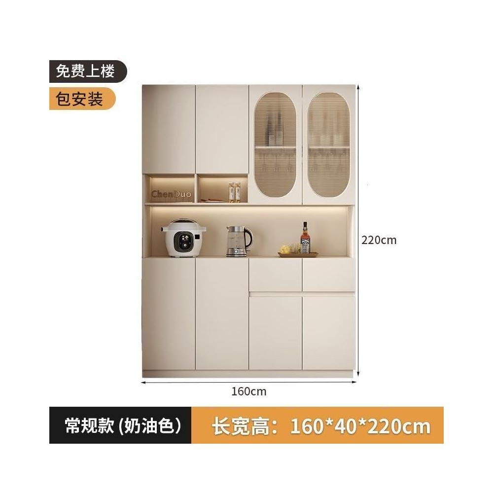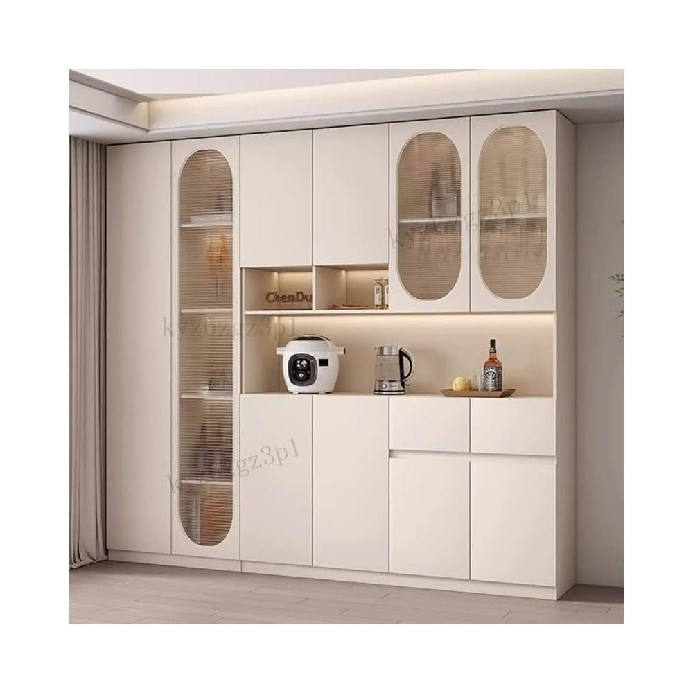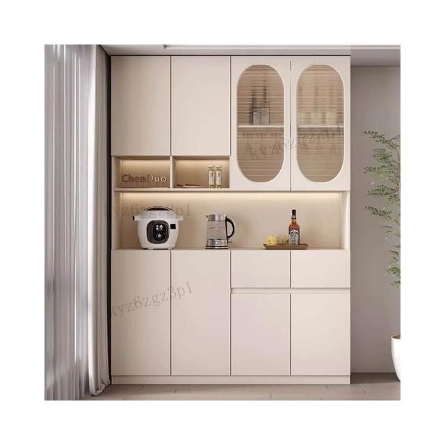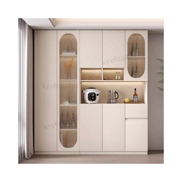 奶油風餐邊櫃靠墻高櫃一體置物架家用客廳收納展示櫃簡約酒櫃