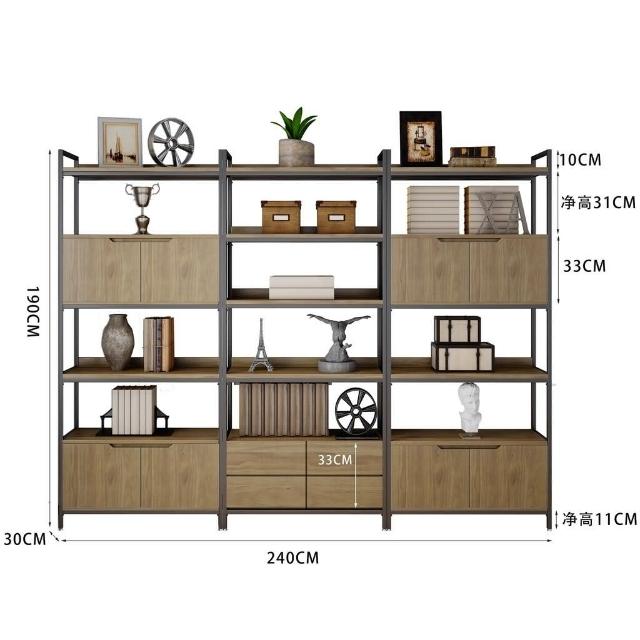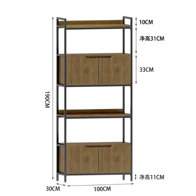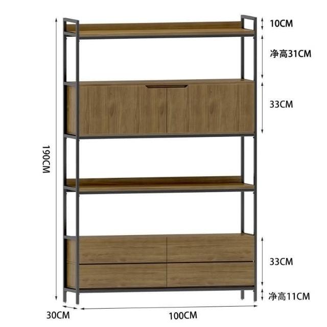 工業風鐵藝實木書架落地置物架客廳儲物櫃子傢用書櫃展示櫃陳列架