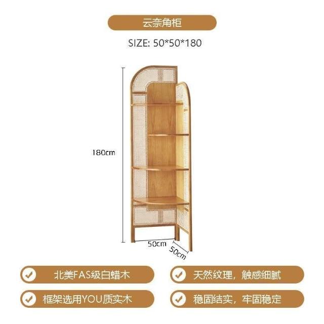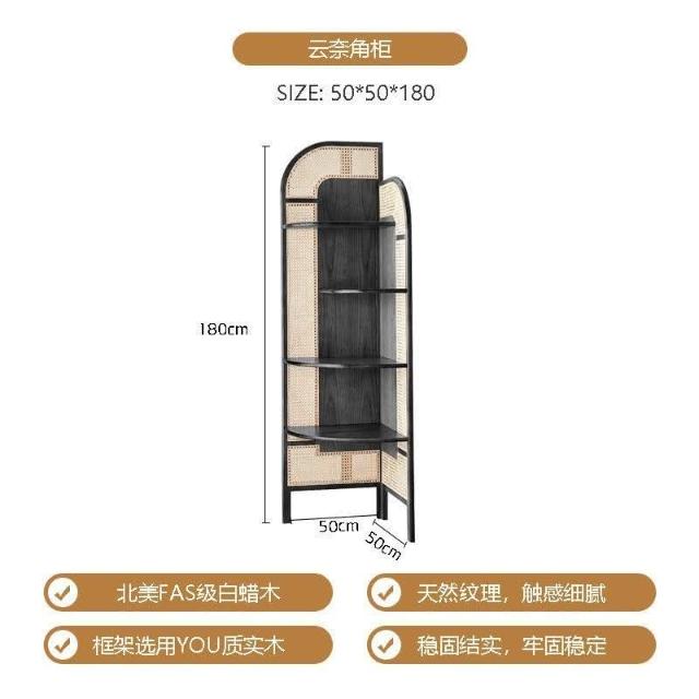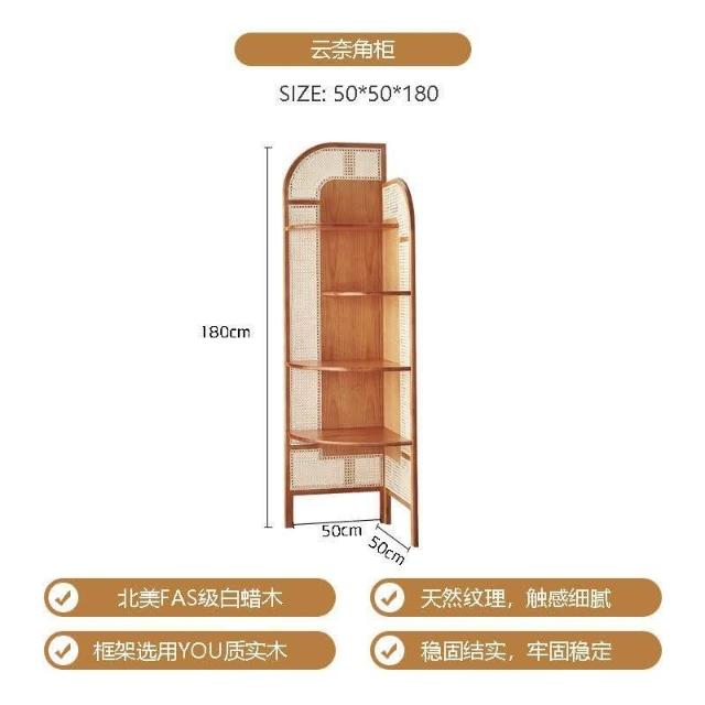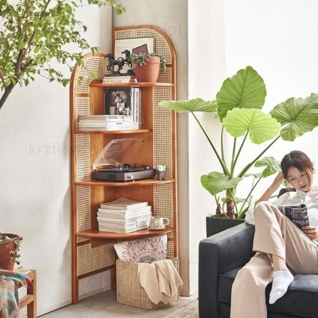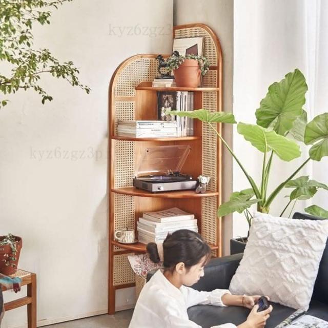 北歐實木三角櫃可移動三角形書架複古藤編轉角櫃扇形墻角置物架