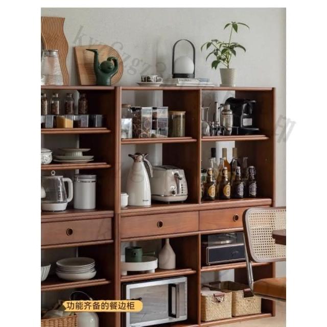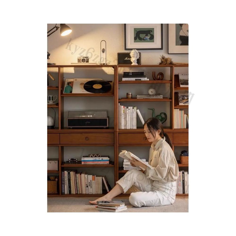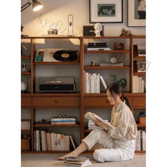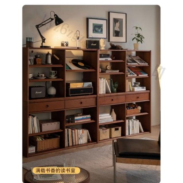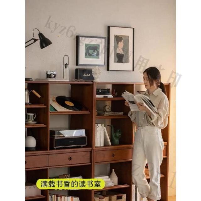 實木落地書架置物架北歐複古書櫃多層展示收納自由組閤格子架