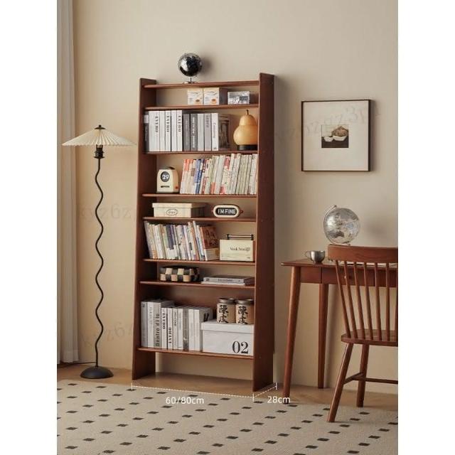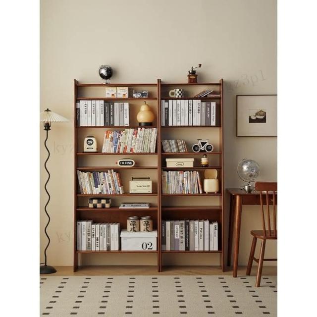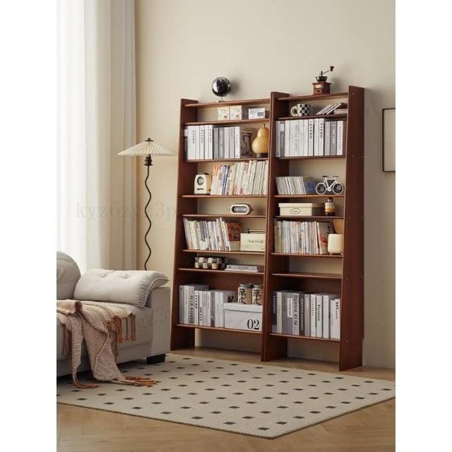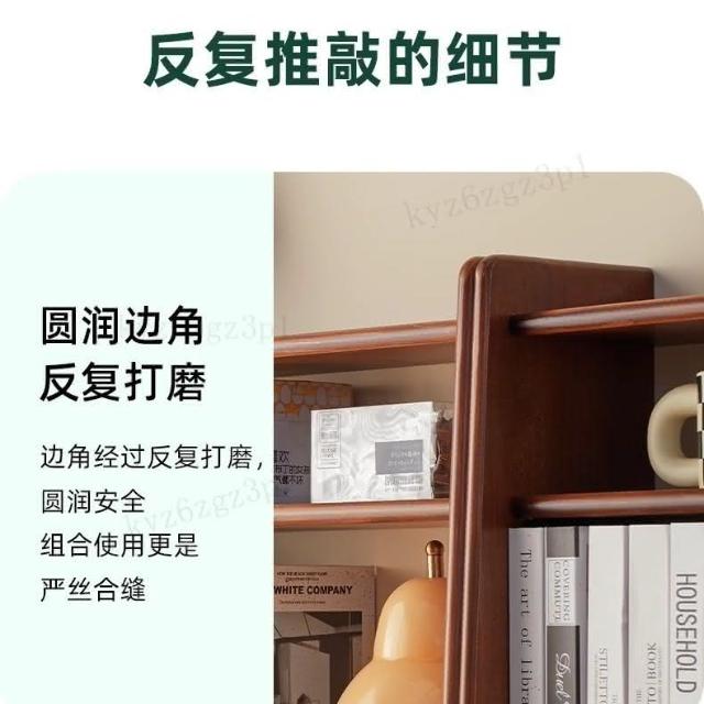 免運實木書架落地置物架家用靠墻簡易書櫃自由組閤儲物櫃客廳窄置物架