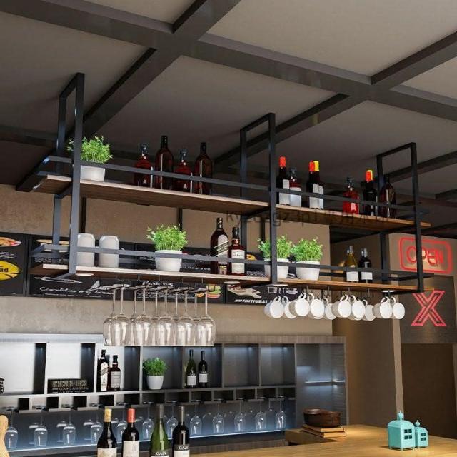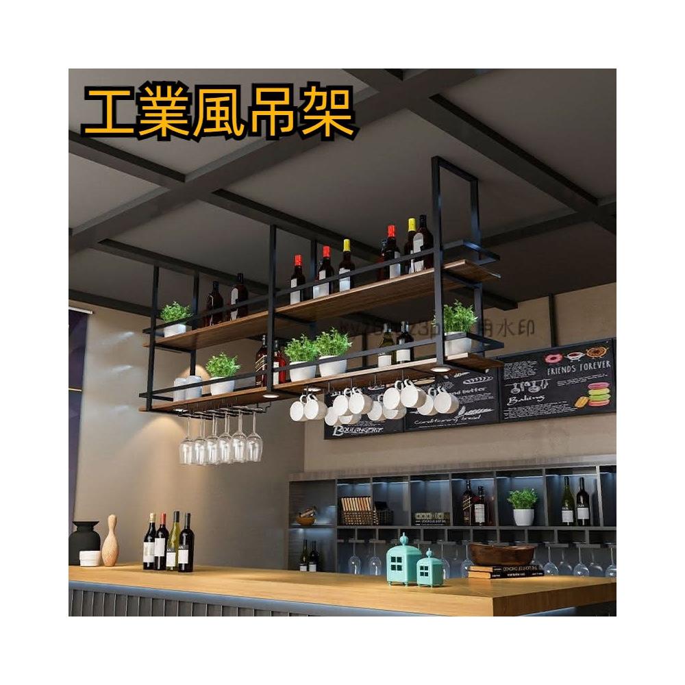 工業風鐵藝實木吊架 置物架 吧檯餐廳酒吧廚房懸掛吊頂吊櫃 酒盃酒架