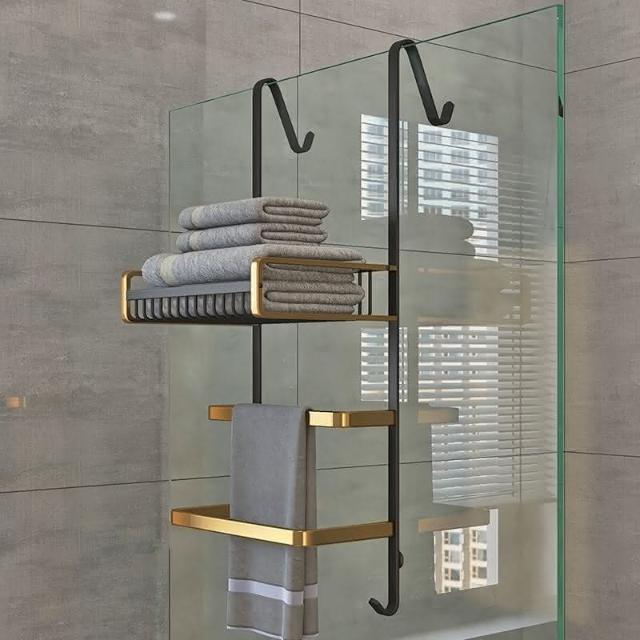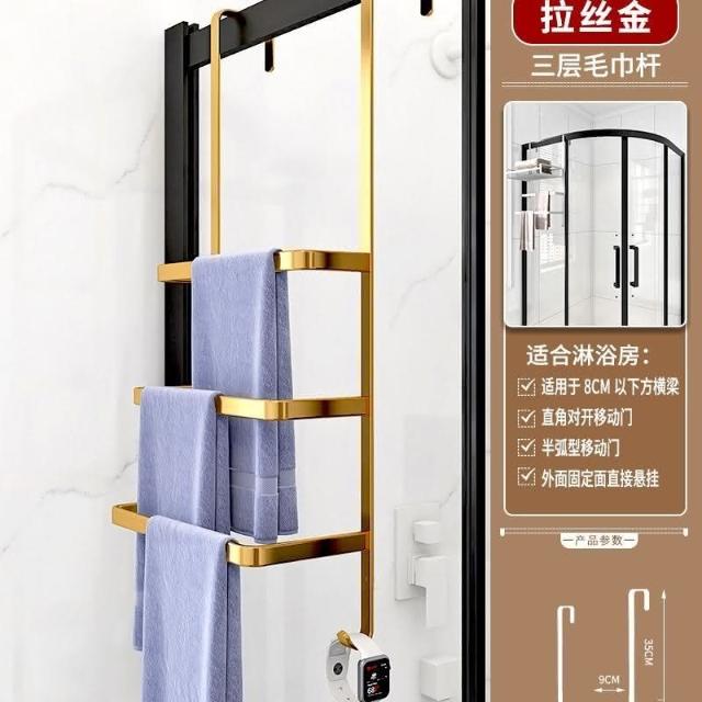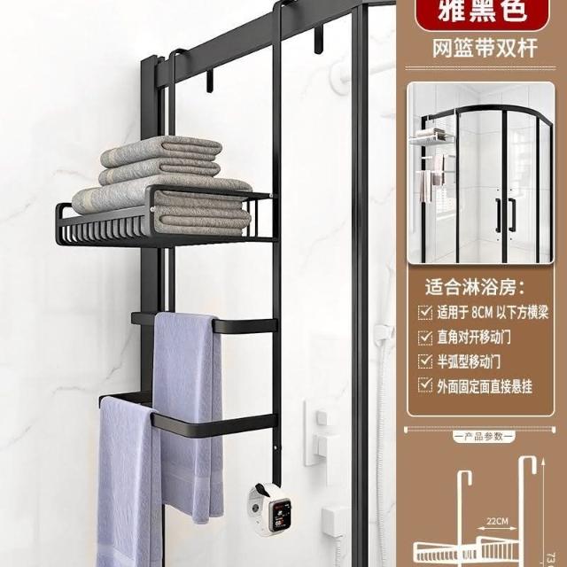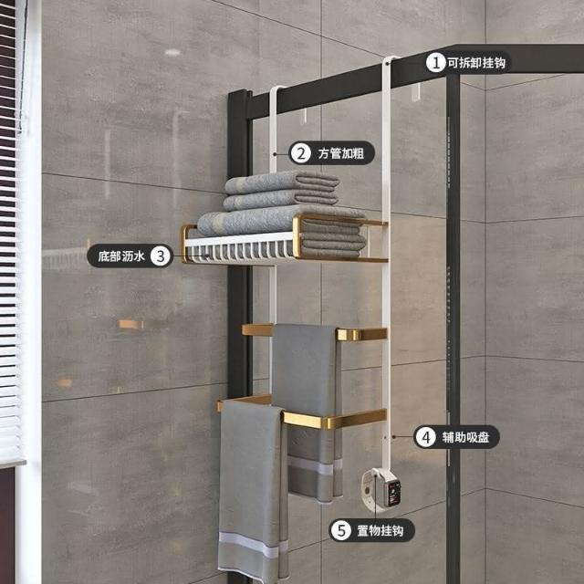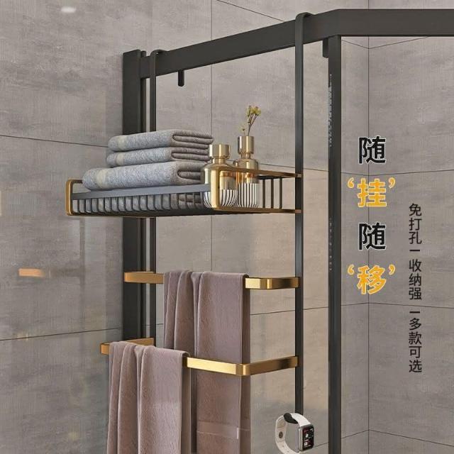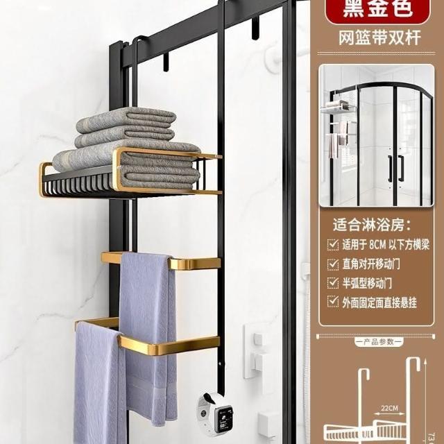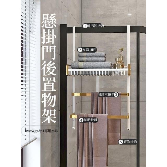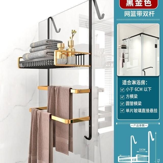 門後置物架 浴室 毛巾架 置物架 免打孔 衛生間浴巾架 酒店 太空鋁淋浴房 黑金色 收納架 掛架 置物架