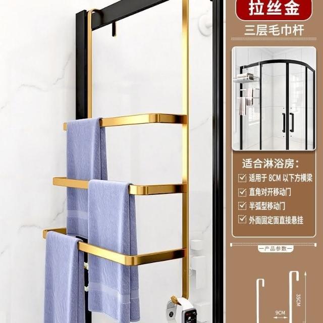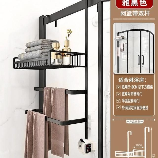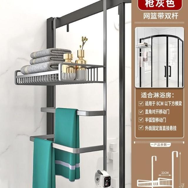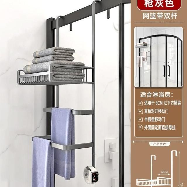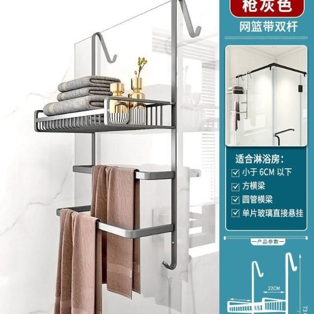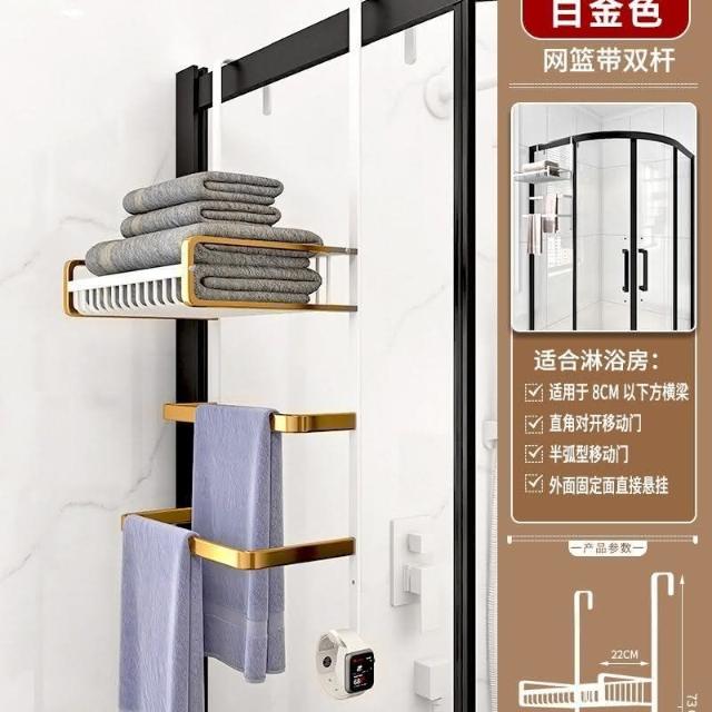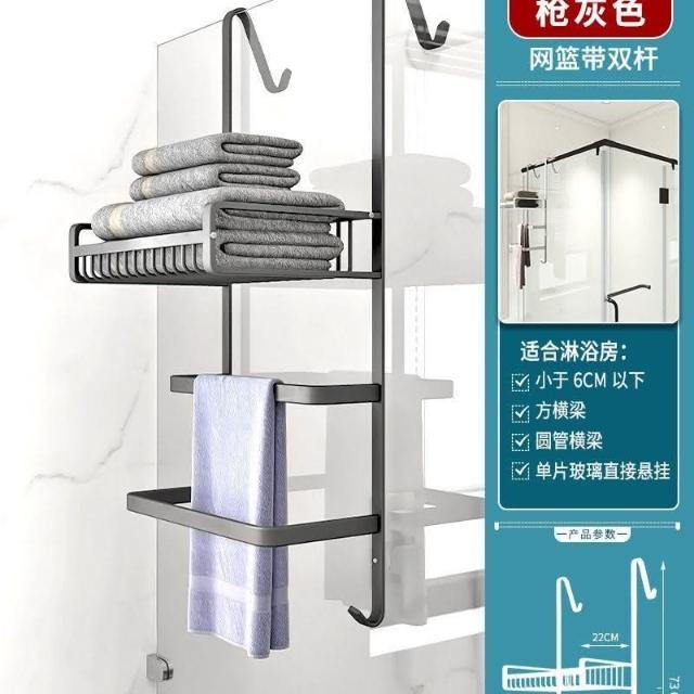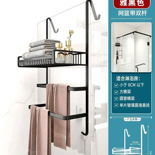 門後置物架 浴室 毛巾架 置物架 免打孔 衛生間浴巾架 酒店 太空鋁淋浴房 黑金色 收納架 掛架 置物架