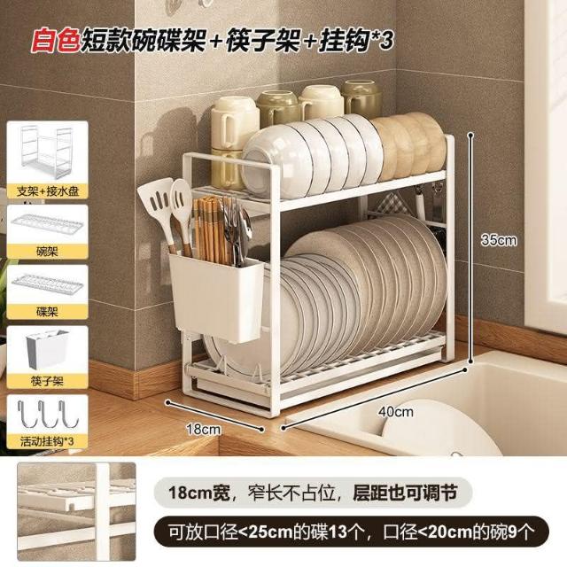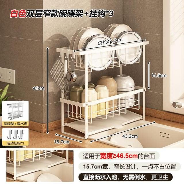 廚房置物架 瀝水碗架 瀝水架 窄款瀝水架 雙層瀝水架 廚具收納 廚房收納 放碗盤子置物架筷子砧闆小型傢用窄水槽置物架