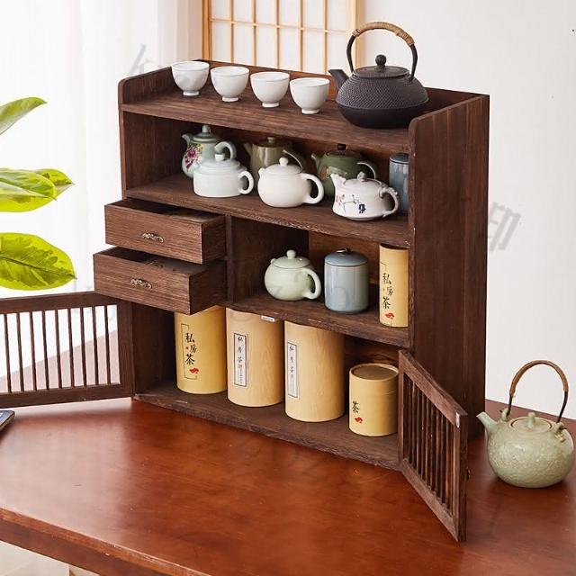 實木桌麵博古架茶杯置物架茶具收納櫃展示架茶器茶具紫砂壺擺放架