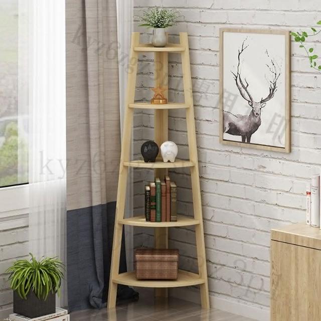 鬆木墻角三角花架多層儲物架櫃轉角實木靠墻收納置物架落地式花架