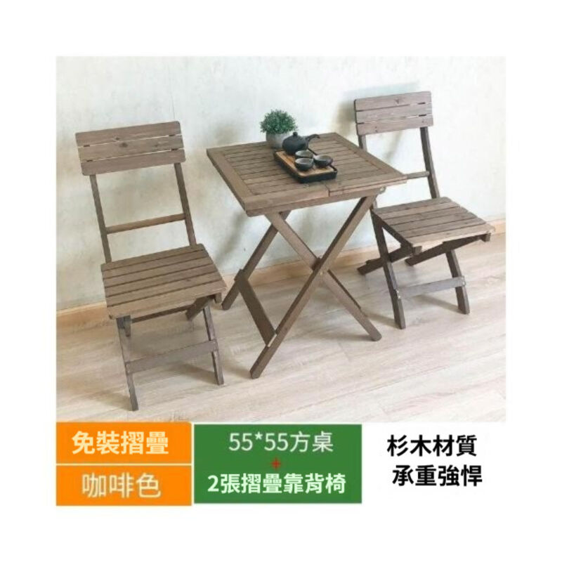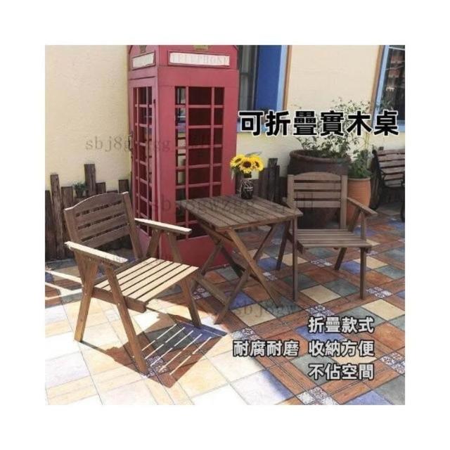 實木可折疊桌 靠背椅組閤 便攜傢用戶外陽臺簡易小茶幾 折疊桌椅 戶外桌椅