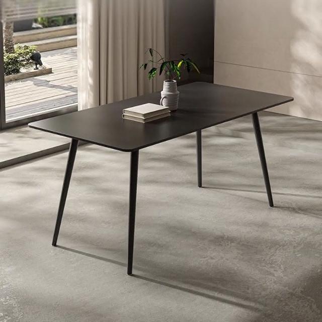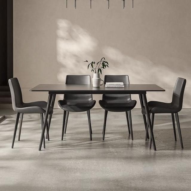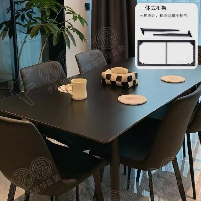 可開發票 意式極簡黑色巖闆餐桌傢用小戶型現代長方形組閤黑色餐桌椅子全黑