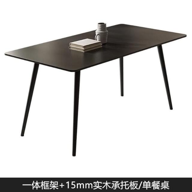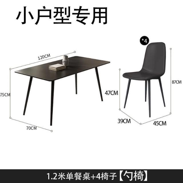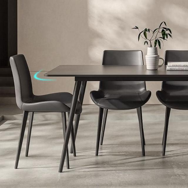 可開發票 意式極簡黑色巖闆餐桌傢用小戶型現代長方形組閤黑色餐桌椅子全黑