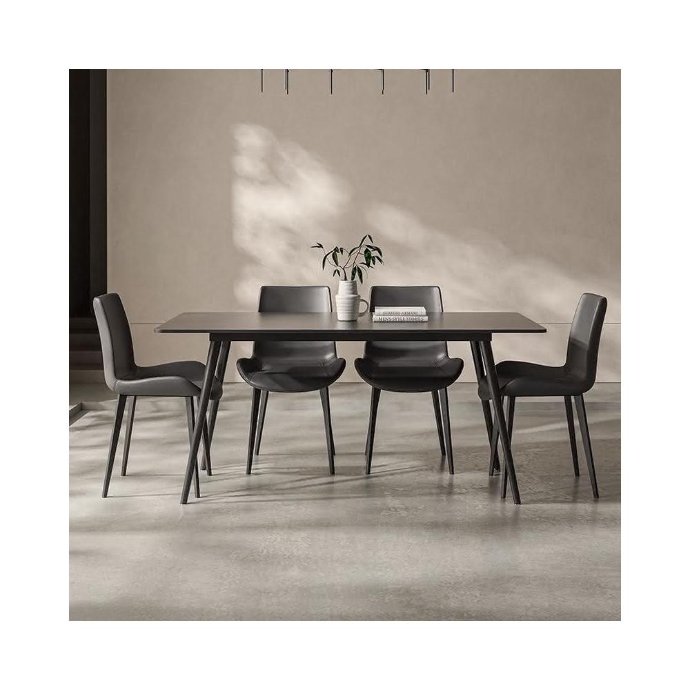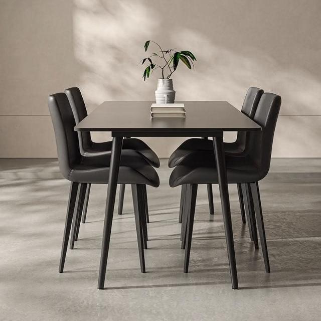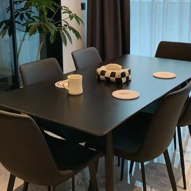 可開發票 意式極簡黑色巖闆餐桌傢用小戶型現代長方形組閤黑色餐桌椅子全黑