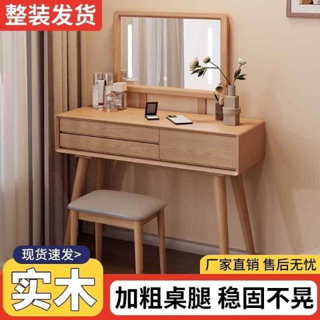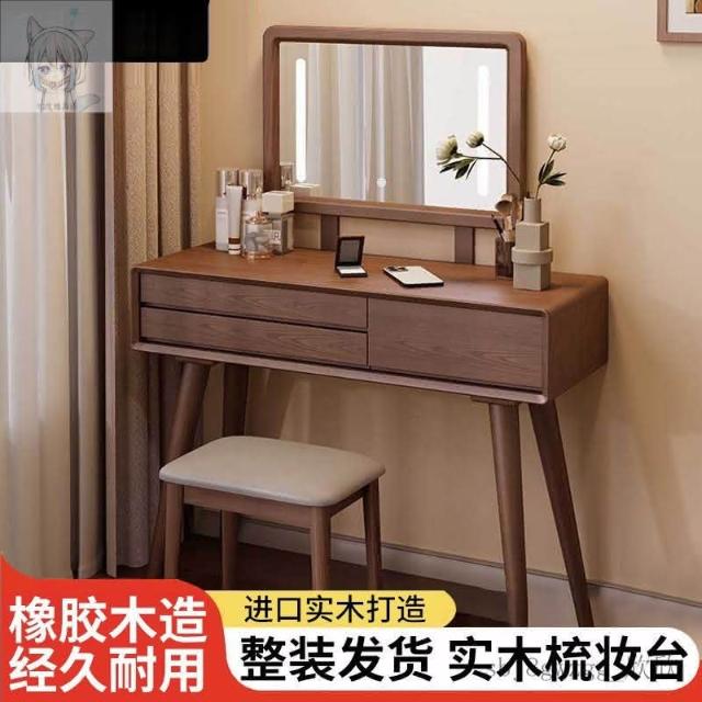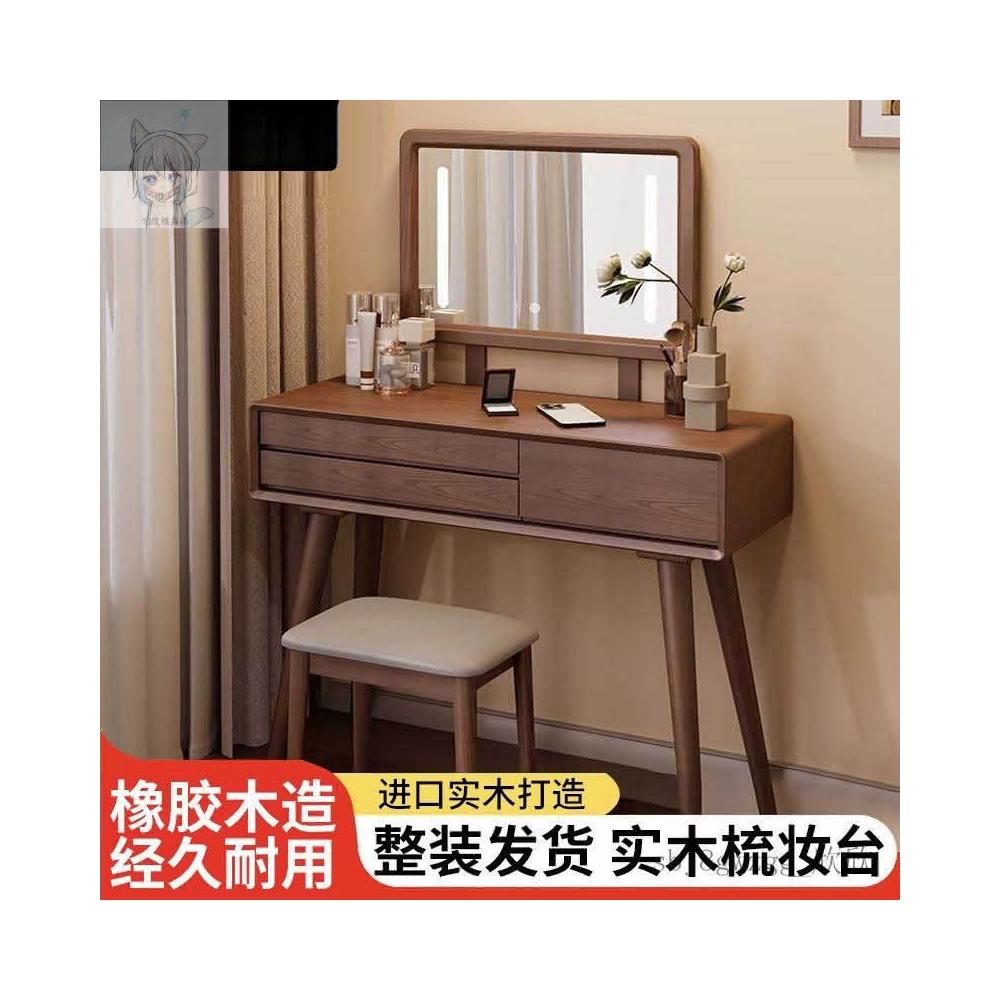工廠直髮 實木梳妝臺臥室現代簡約2024新款化妝櫃中式化妝桌衚桃小型化妝臺