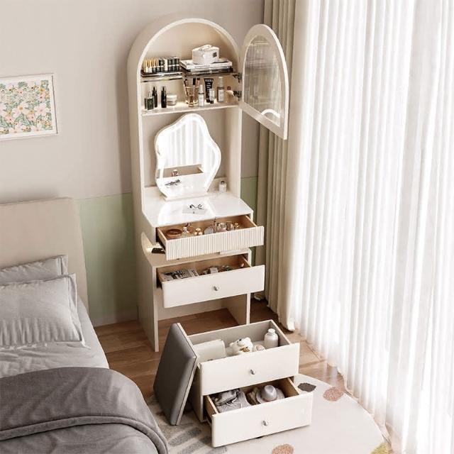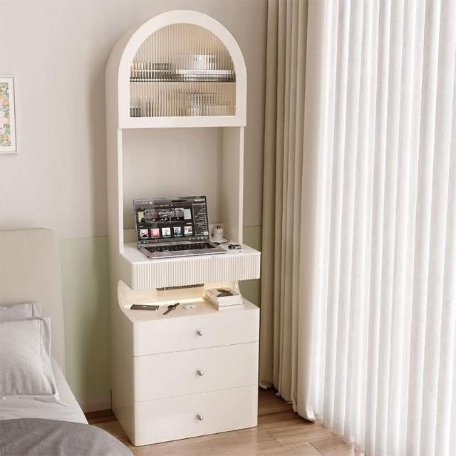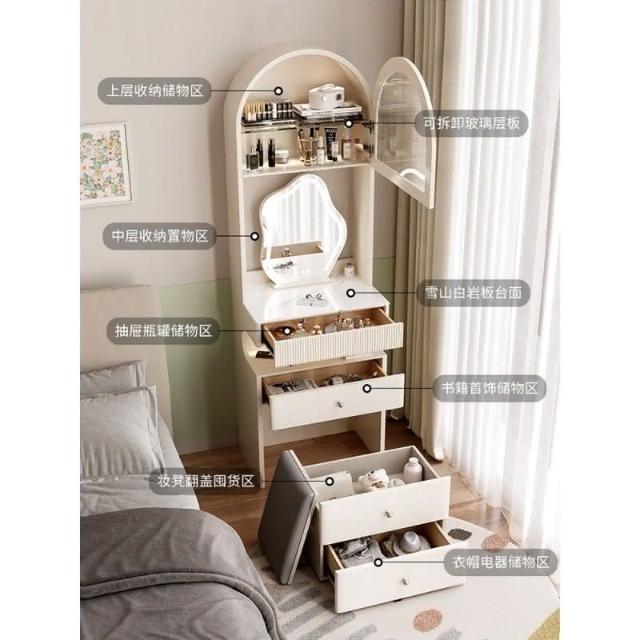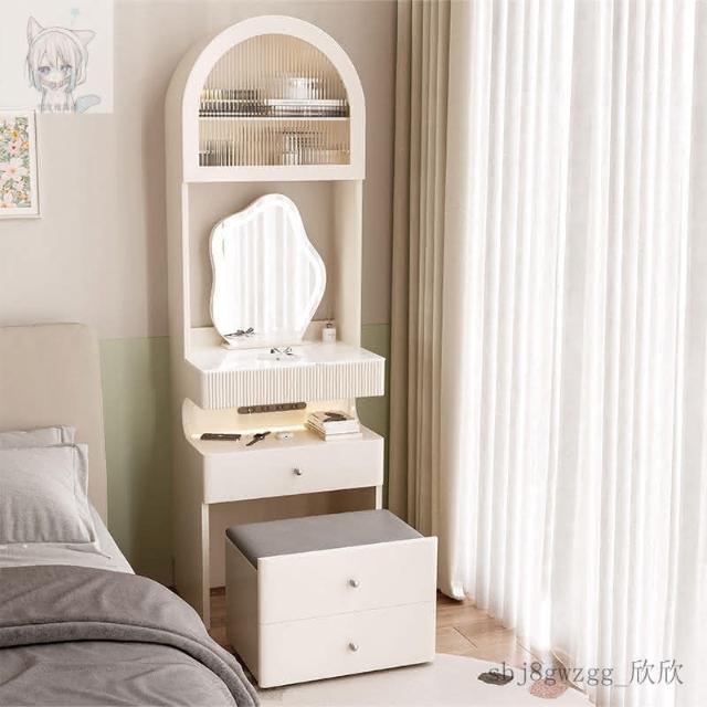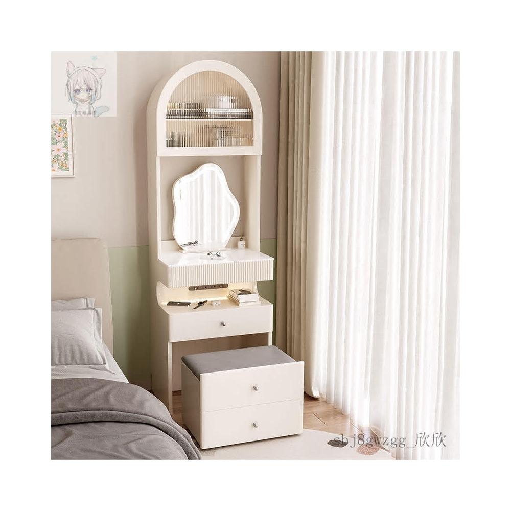 工廠直髮 奶油風梳妝臺床頭櫃一體臥室簡約小戶型50CM窄化妝桌小型2024床邊