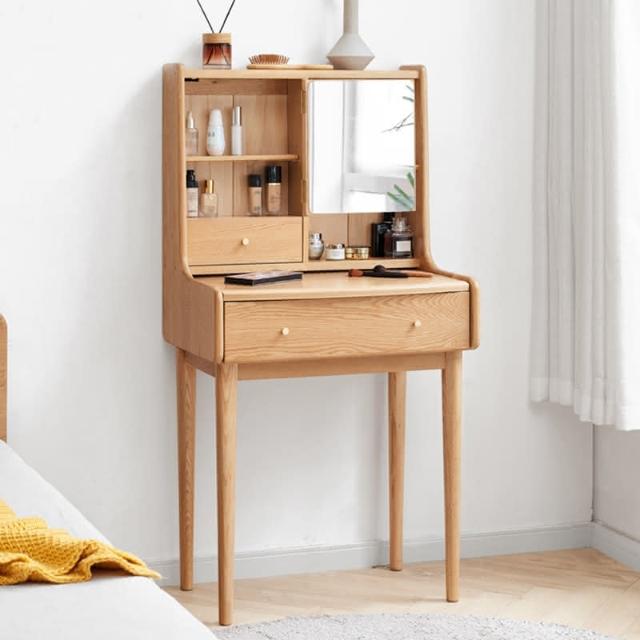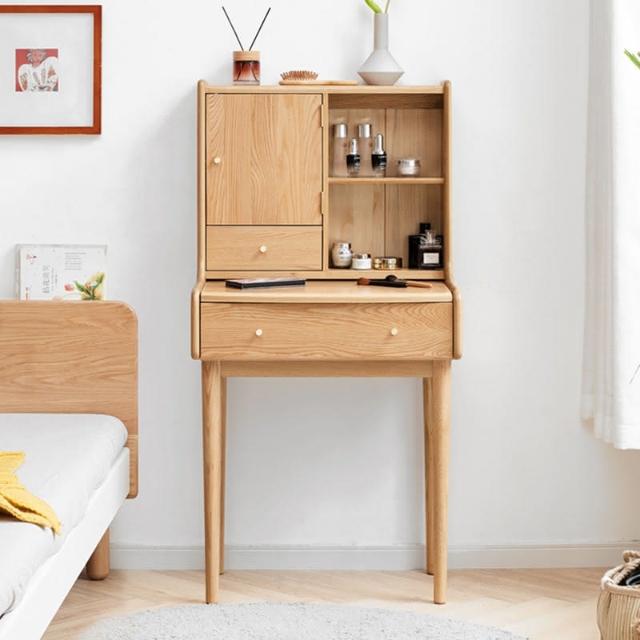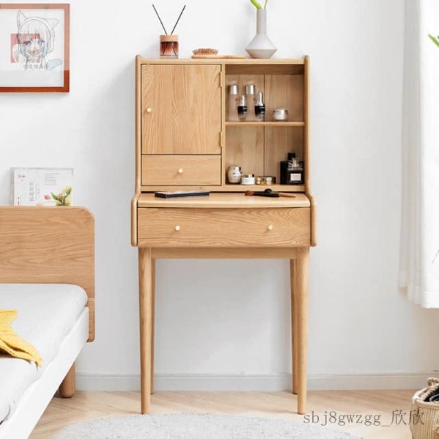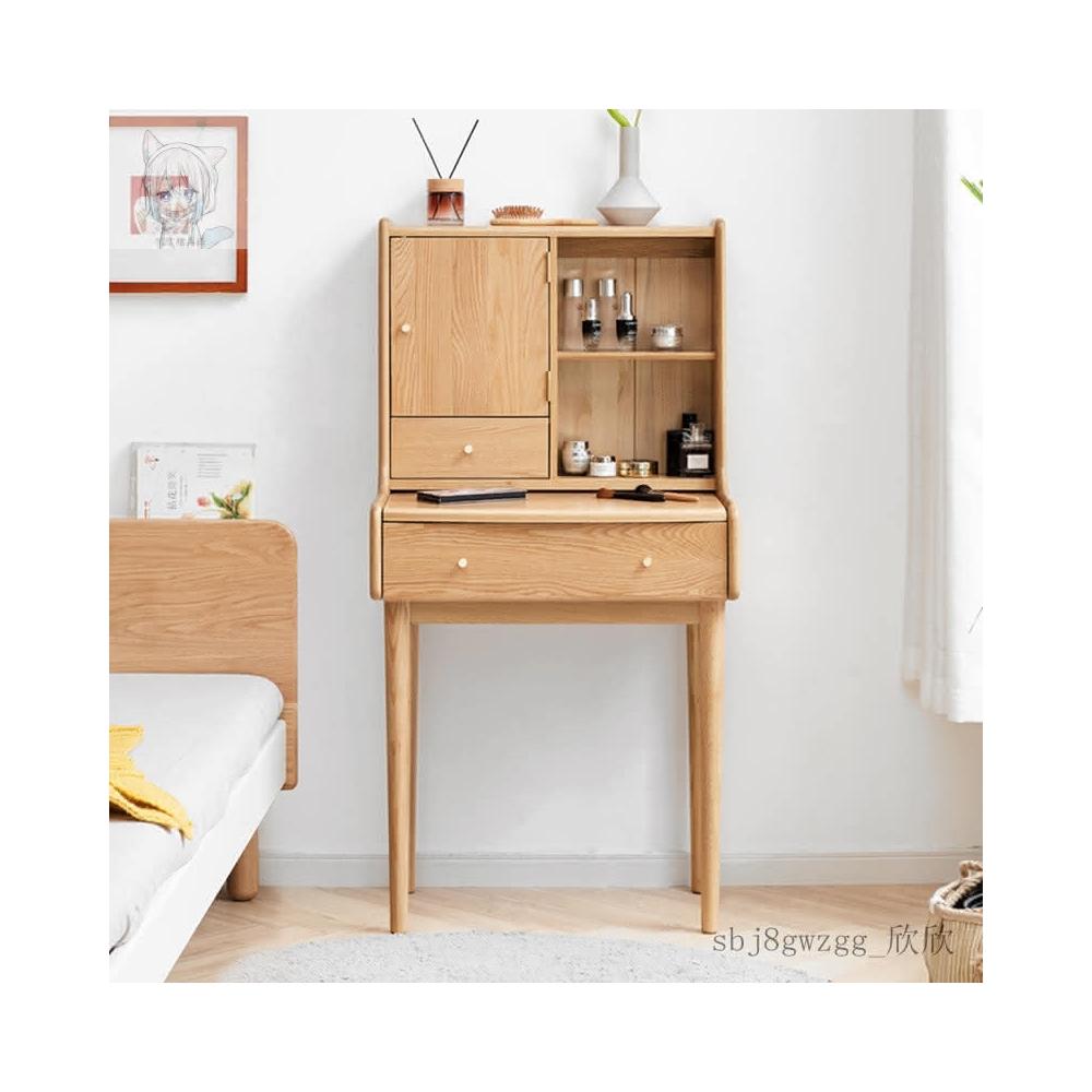 工廠直髮 實木梳妝臺橡木原木迷你化妝桌現代簡約書桌北歐小戶型臥室化妝臺