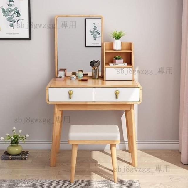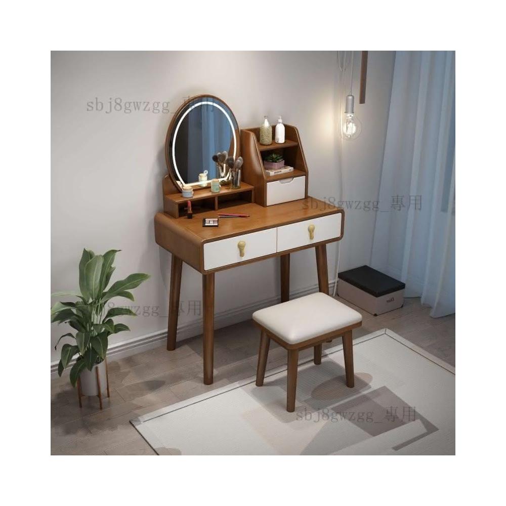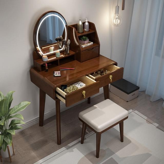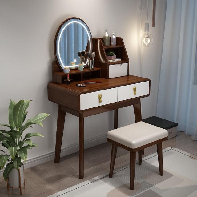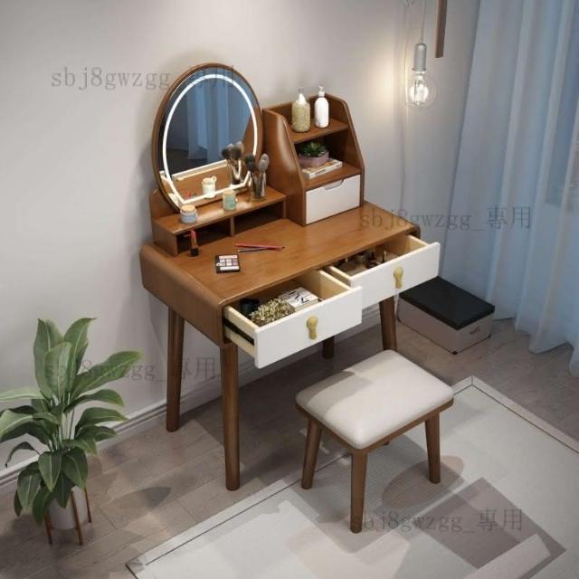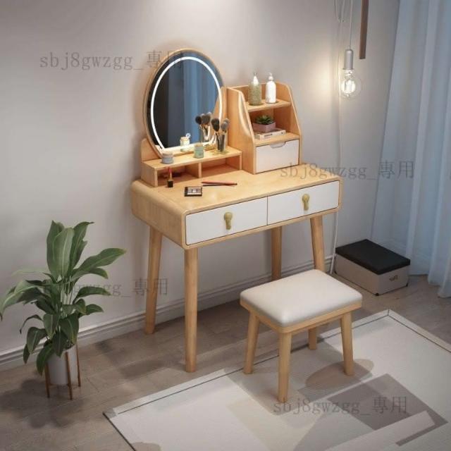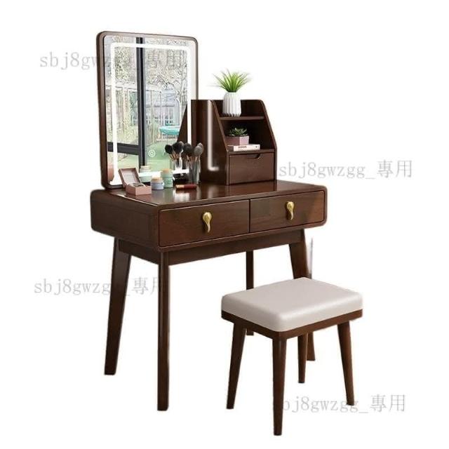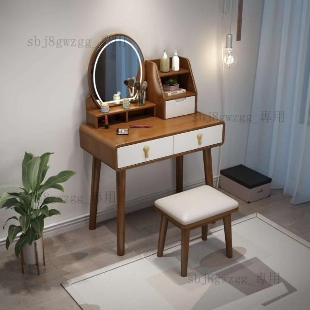 可開髮票 北歐實木梳妝臺帶收納櫃一體化妝桌現代簡約網紅帶led燈梳妝桌