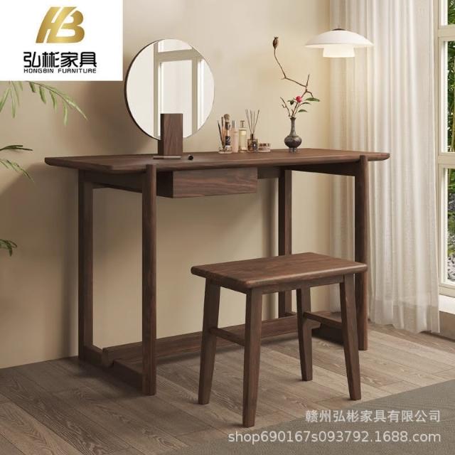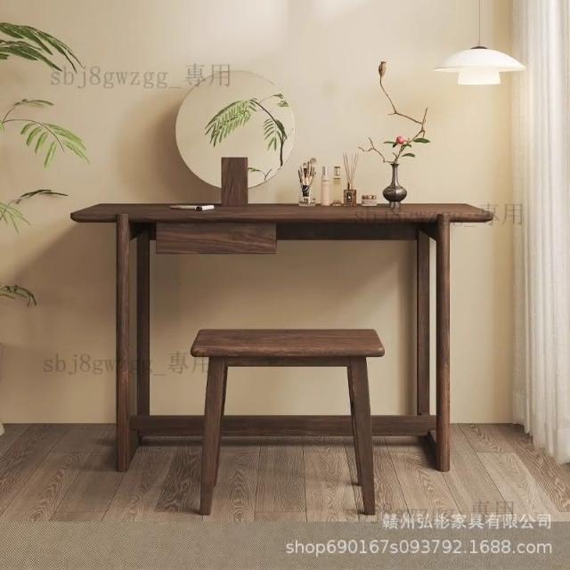可開髮票 現代簡約實木梳妝臺妝凳組閤衚桃木原木風小戶型北歐極簡化妝桌