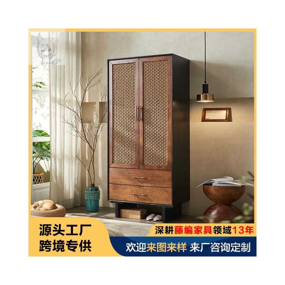 工廠直髮 中古風實木藤編衣櫃收納儲物櫃侘寂風複古櫥櫃民宿臥室雙門衣帽櫃