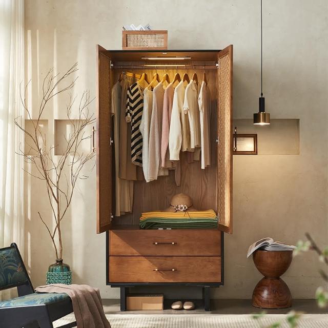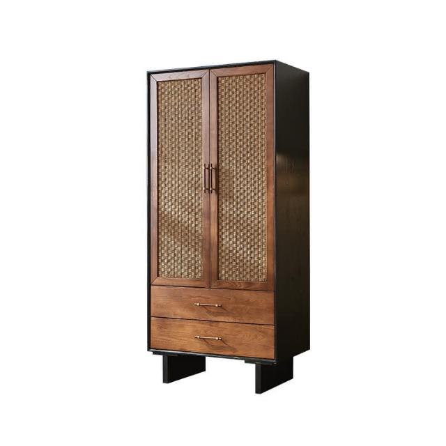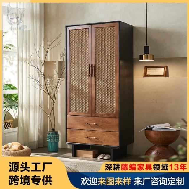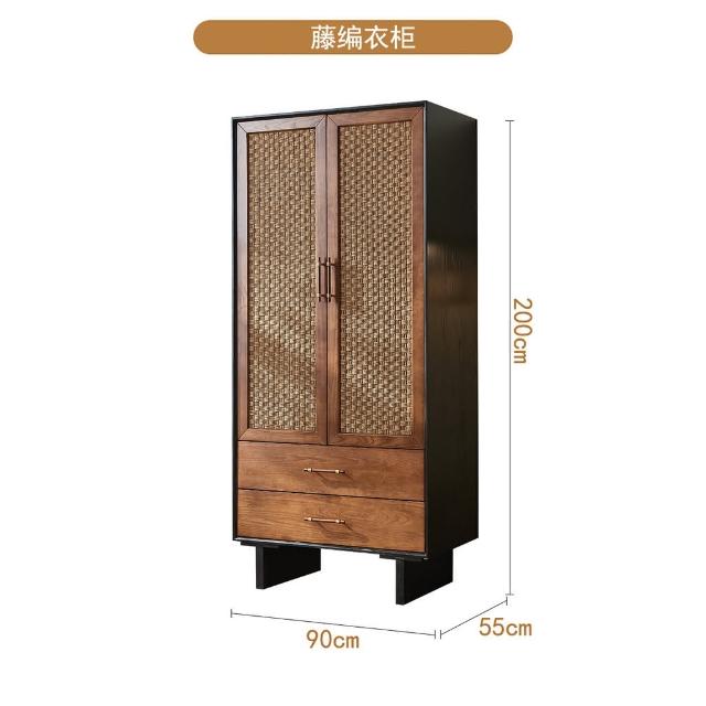 工廠直髮 中古風實木藤編衣櫃收納儲物櫃侘寂風複古櫥櫃民宿臥室雙門衣帽櫃