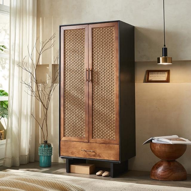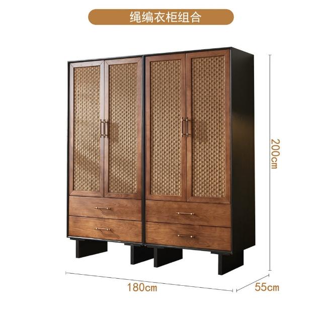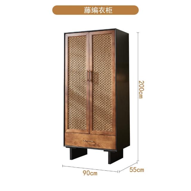工廠直髮 中古風實木藤編衣櫃收納儲物櫃侘寂風複古櫥櫃民宿臥室雙門衣帽櫃